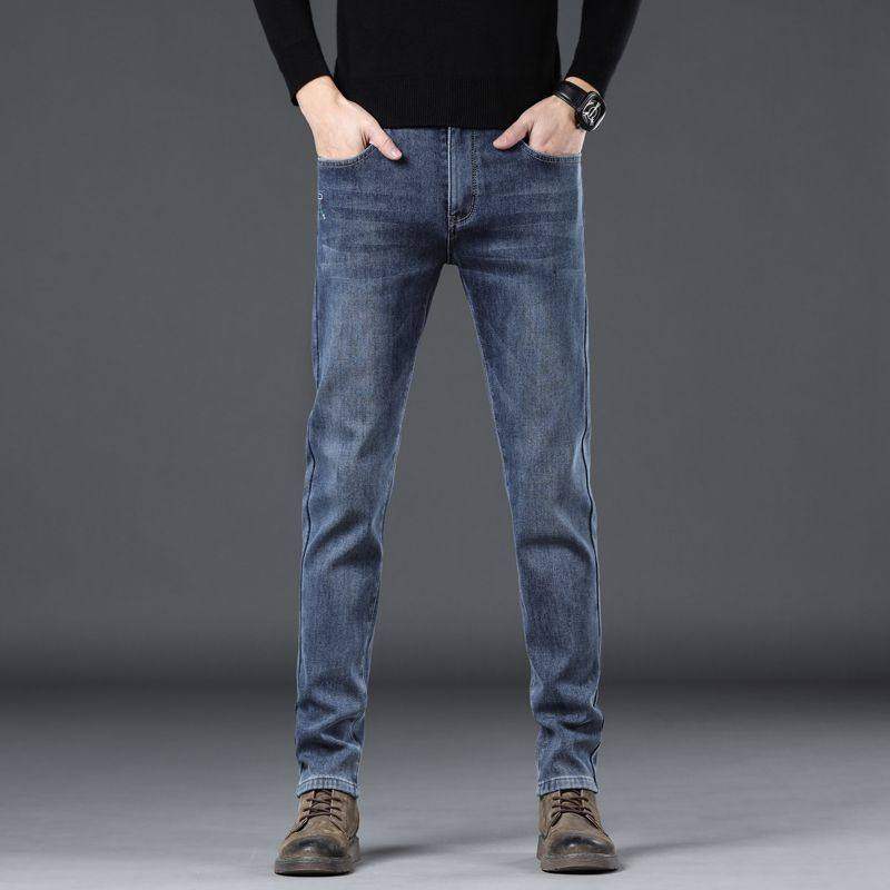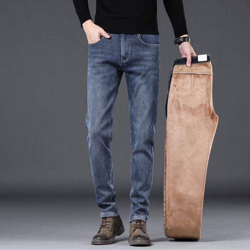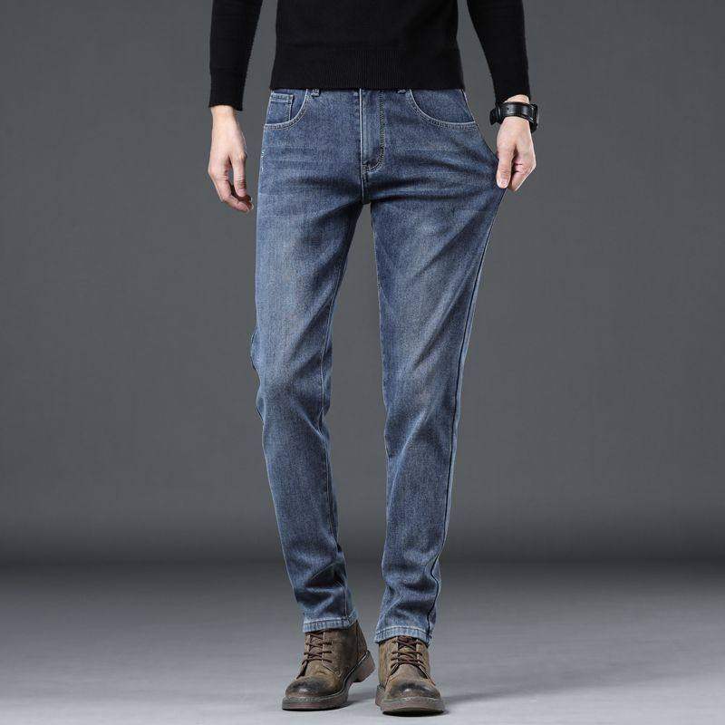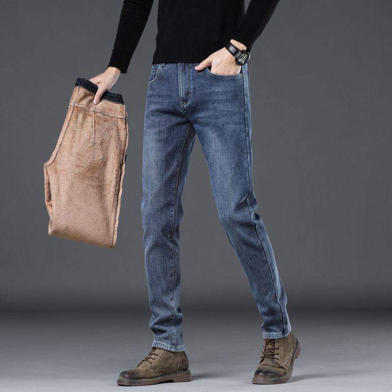 Yishion以纯官方时尚正品秋冬季加绒加厚男士牛仔裤修身直筒男士