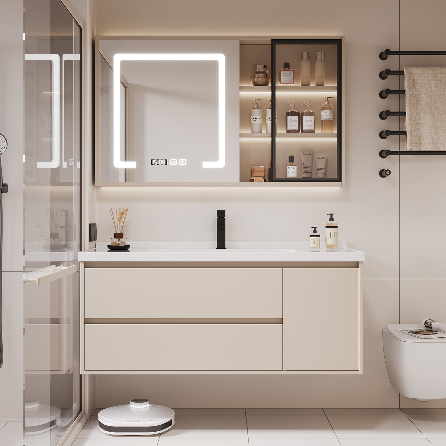 奶油简约实木陶瓷现代一体智能浴室柜卫生间洗脸盆洗手盆组合洗漱