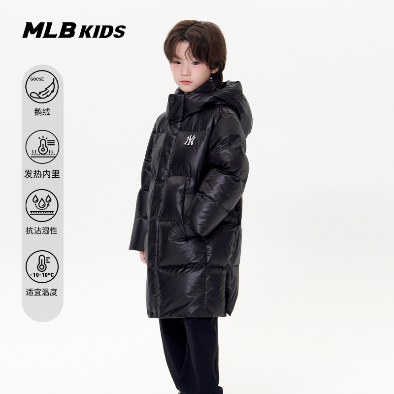 MLB儿童官方男女童精致复古LOGO长款连帽鹅绒羽绒服25秋冬新款
