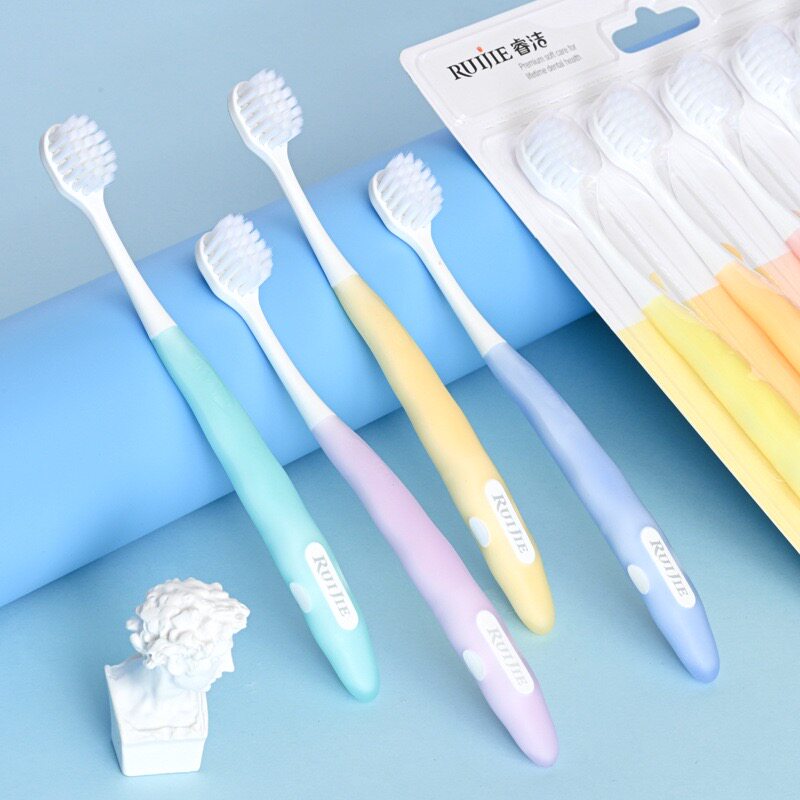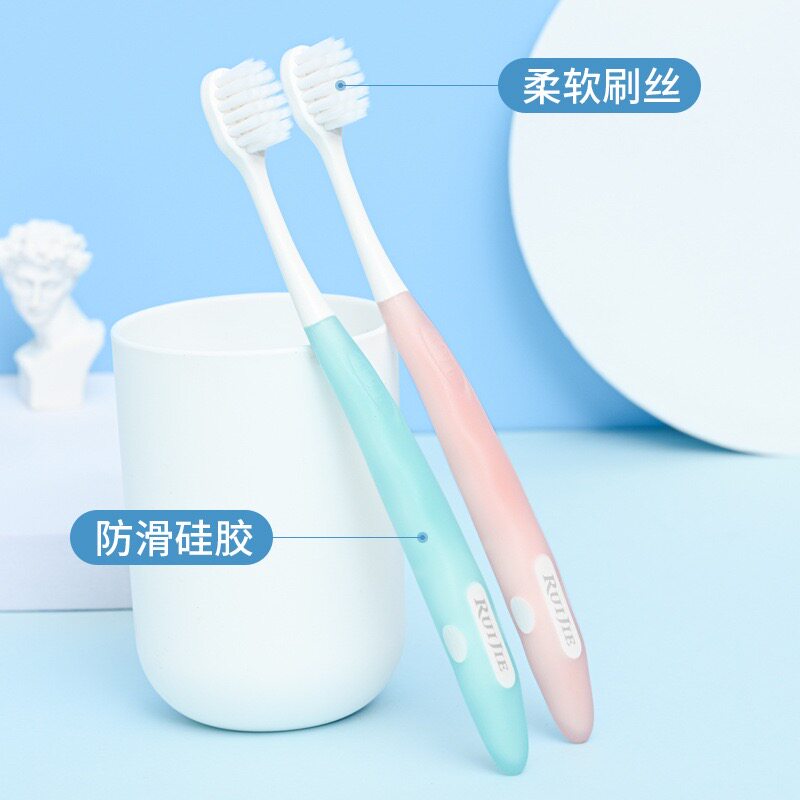 睿洁软毛小头高档牙刷圆孔细丝软胶刷柄防滑马卡龙可拆卸1版6支装