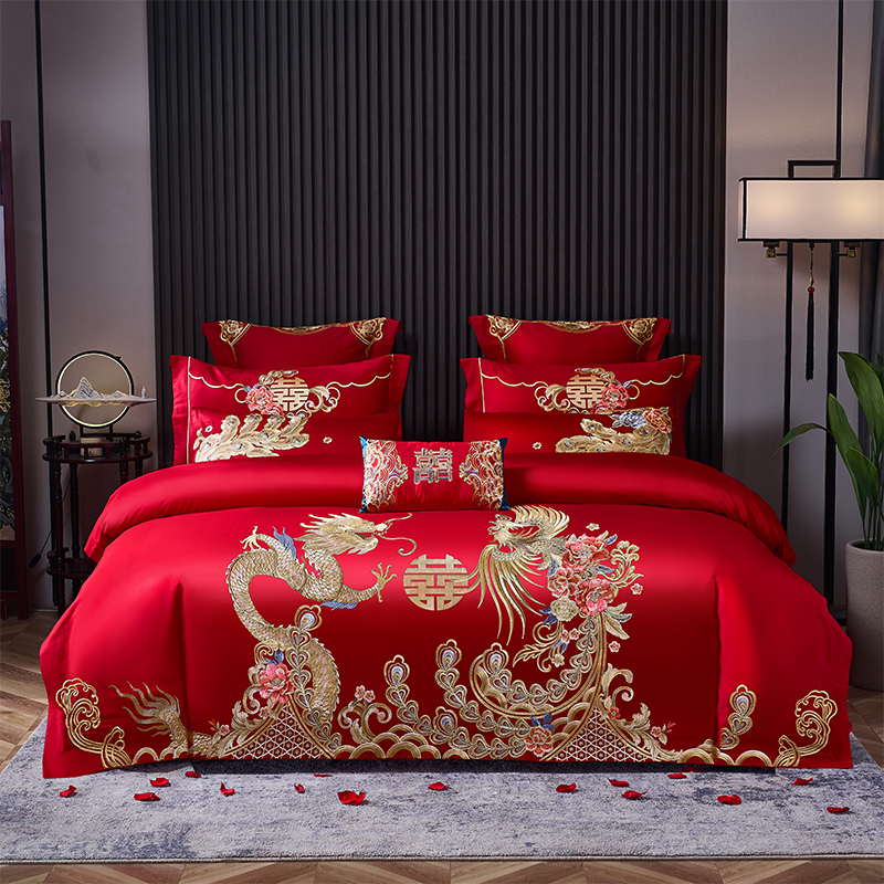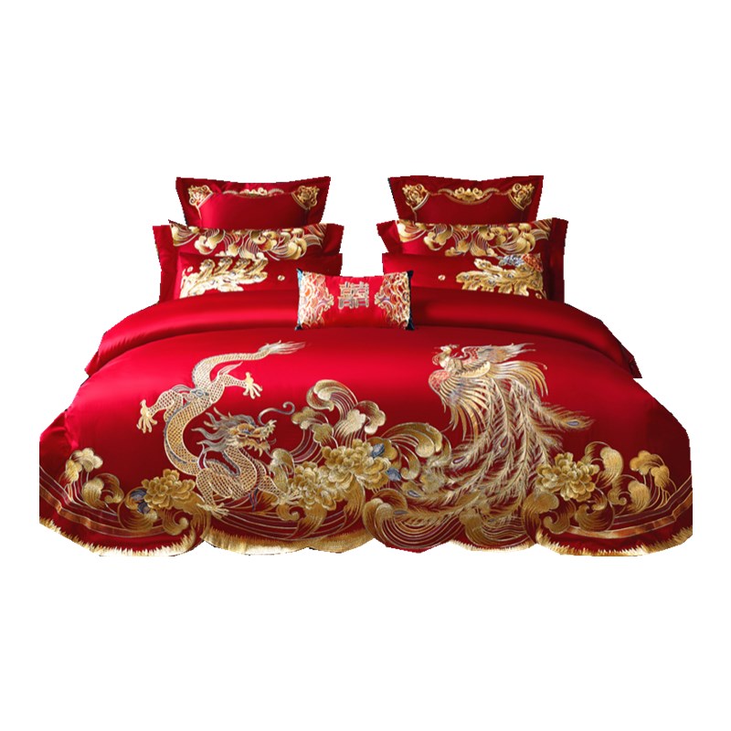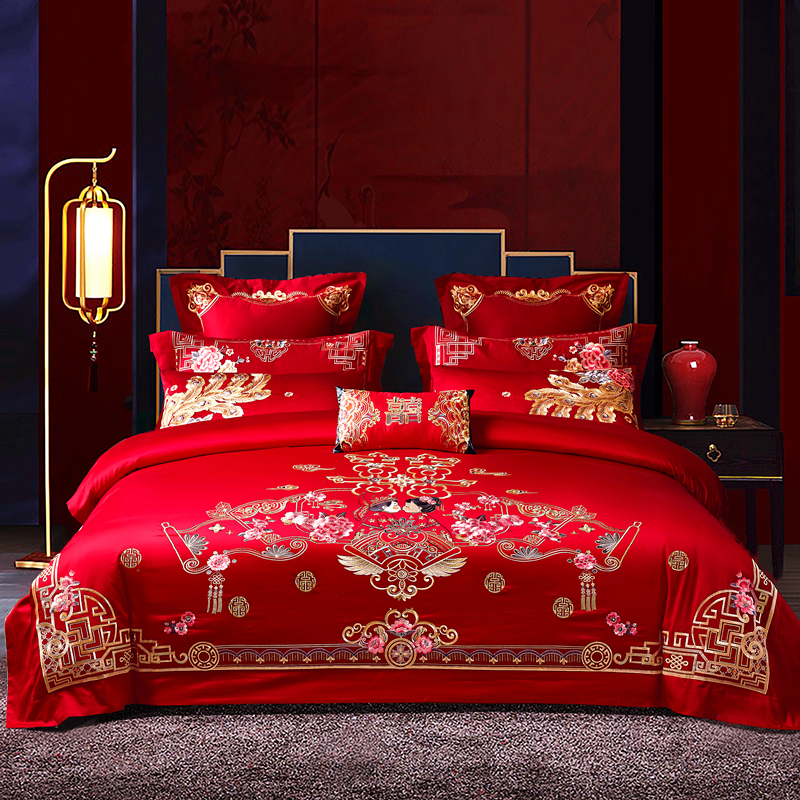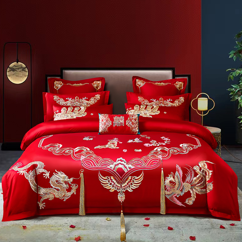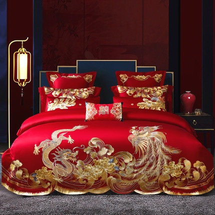 婚庆大红色刺绣四件套结婚房床上用品套件喜婚被龙凤床单被套中式