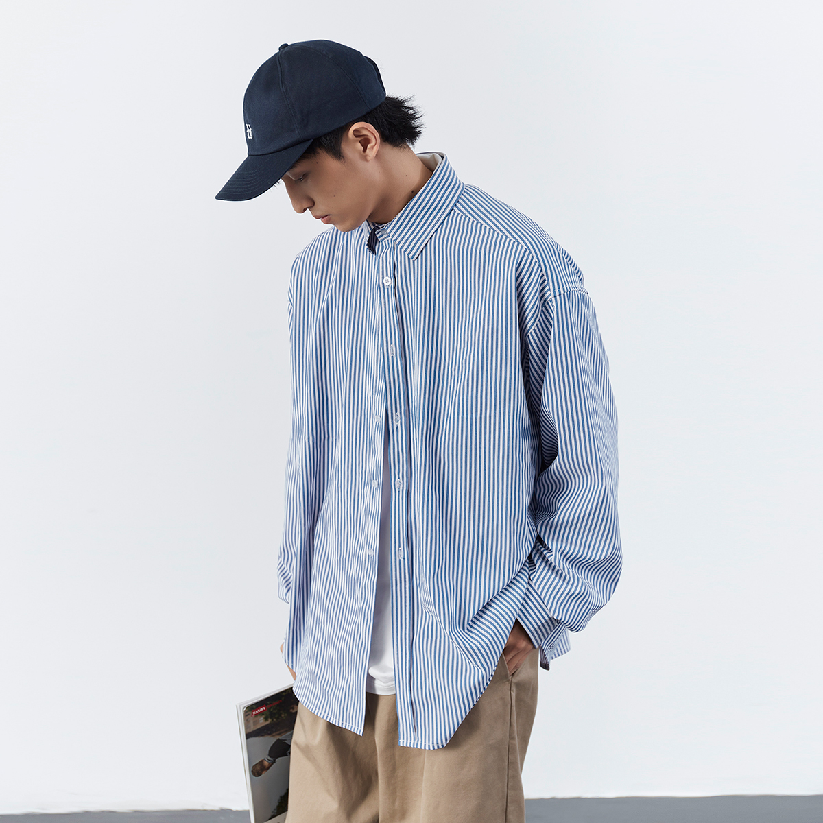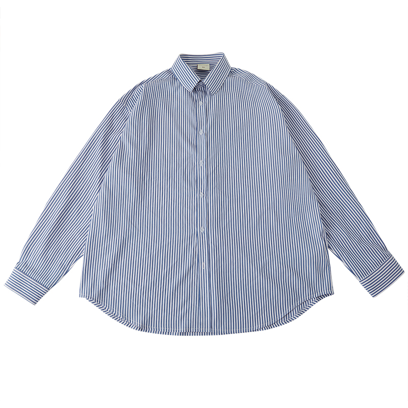 【潮woo专属】Mentmate日系cityboy蓝色细条纹中性休闲长袖衬衫男
