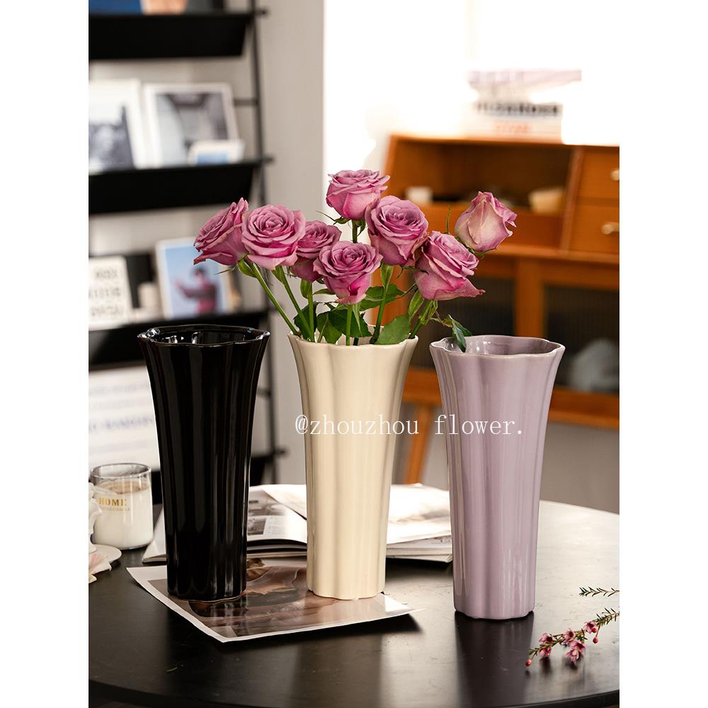 周周的花瓶1.0花瓣口陶瓷花瓶小众简约客厅桌面摆件花器家居插花