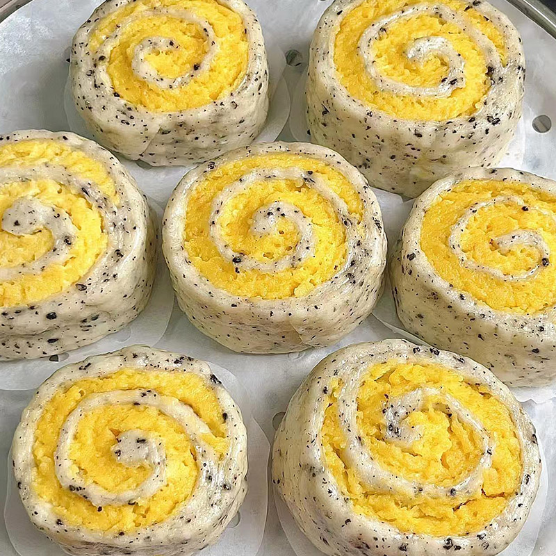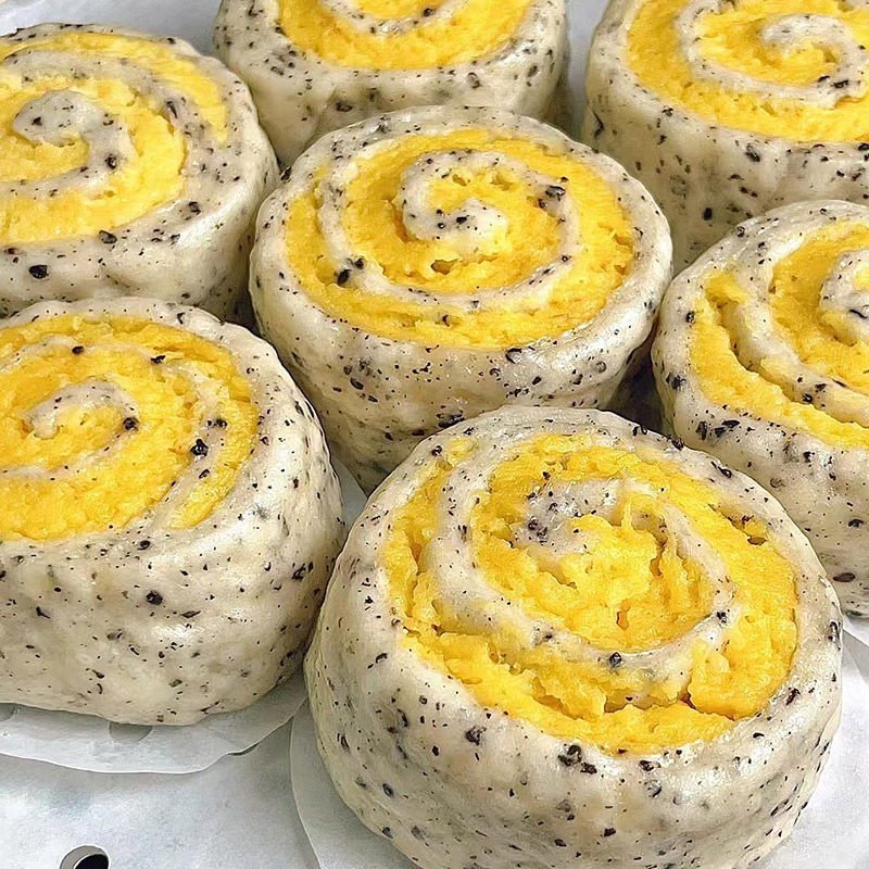 黑芝麻奶黄馒头卷宝宝儿童营养早餐半成品手工面食速冻包点食品