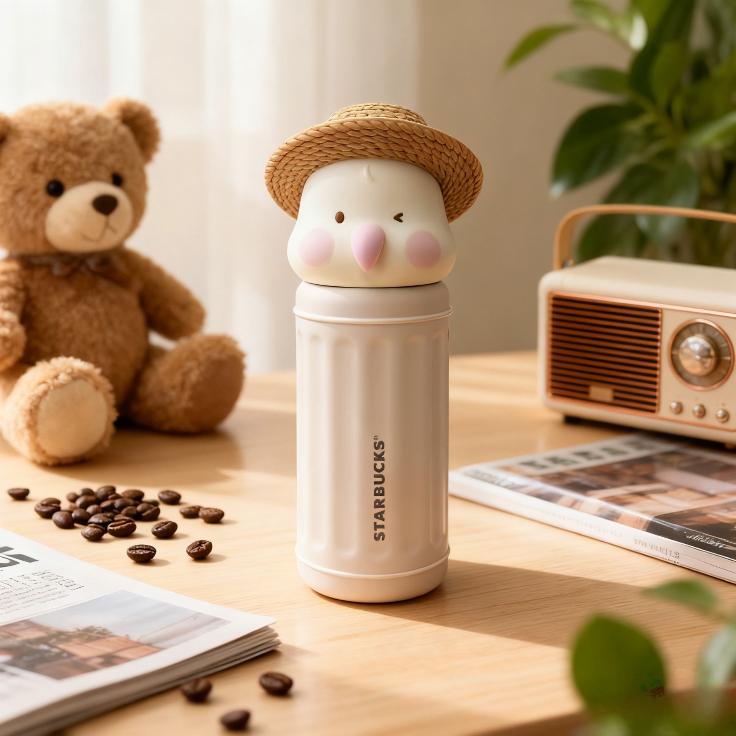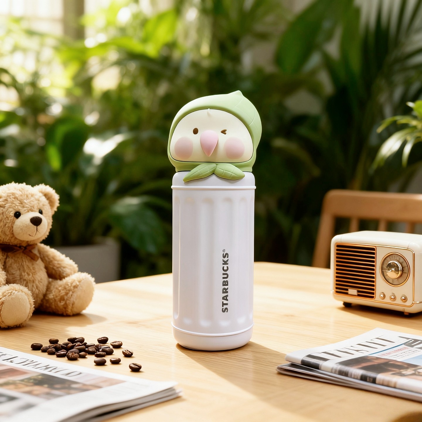 星巴克杯子2025新品秋日野野系列鹦鹉造型不锈钢保温杯吸管随行杯