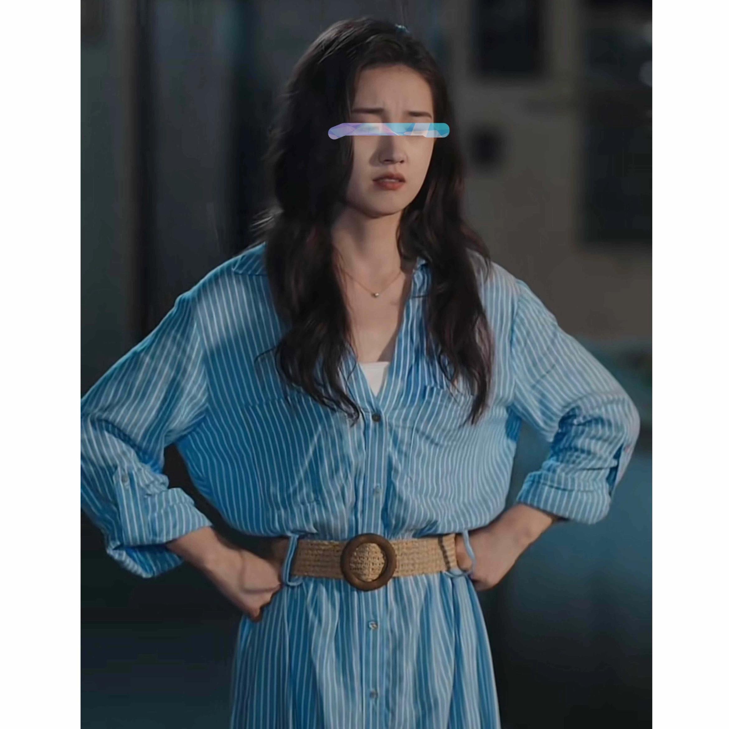 盛夏芬德拉女主同款郭宇欣白清枚同款休闲腰带竖条纹衬衣式连衣裙