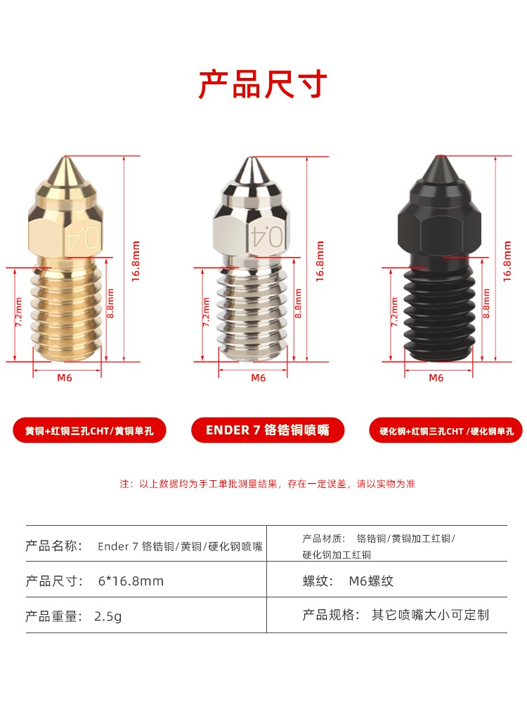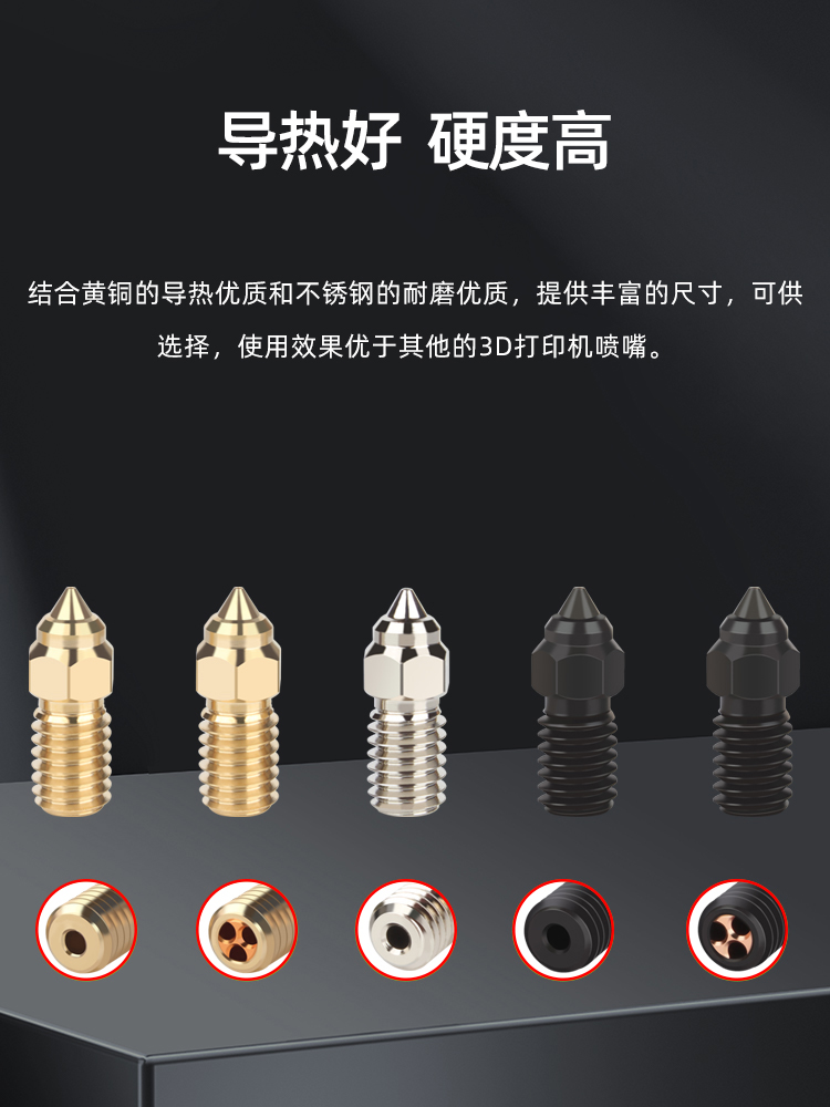 3D打印机配件Ender7铬锆铜黄铜喷嘴1.75mm耐高温腐蚀光滑喷头