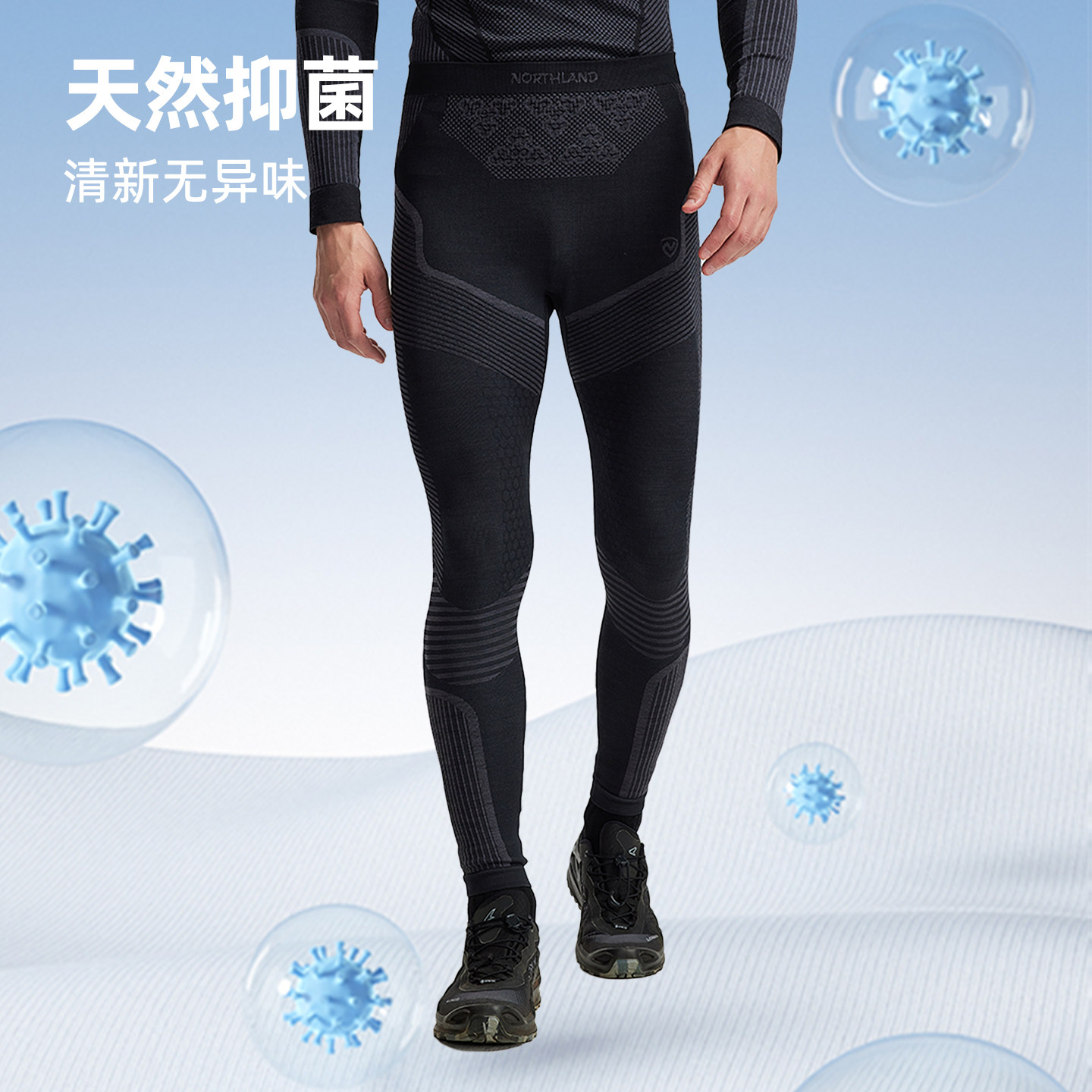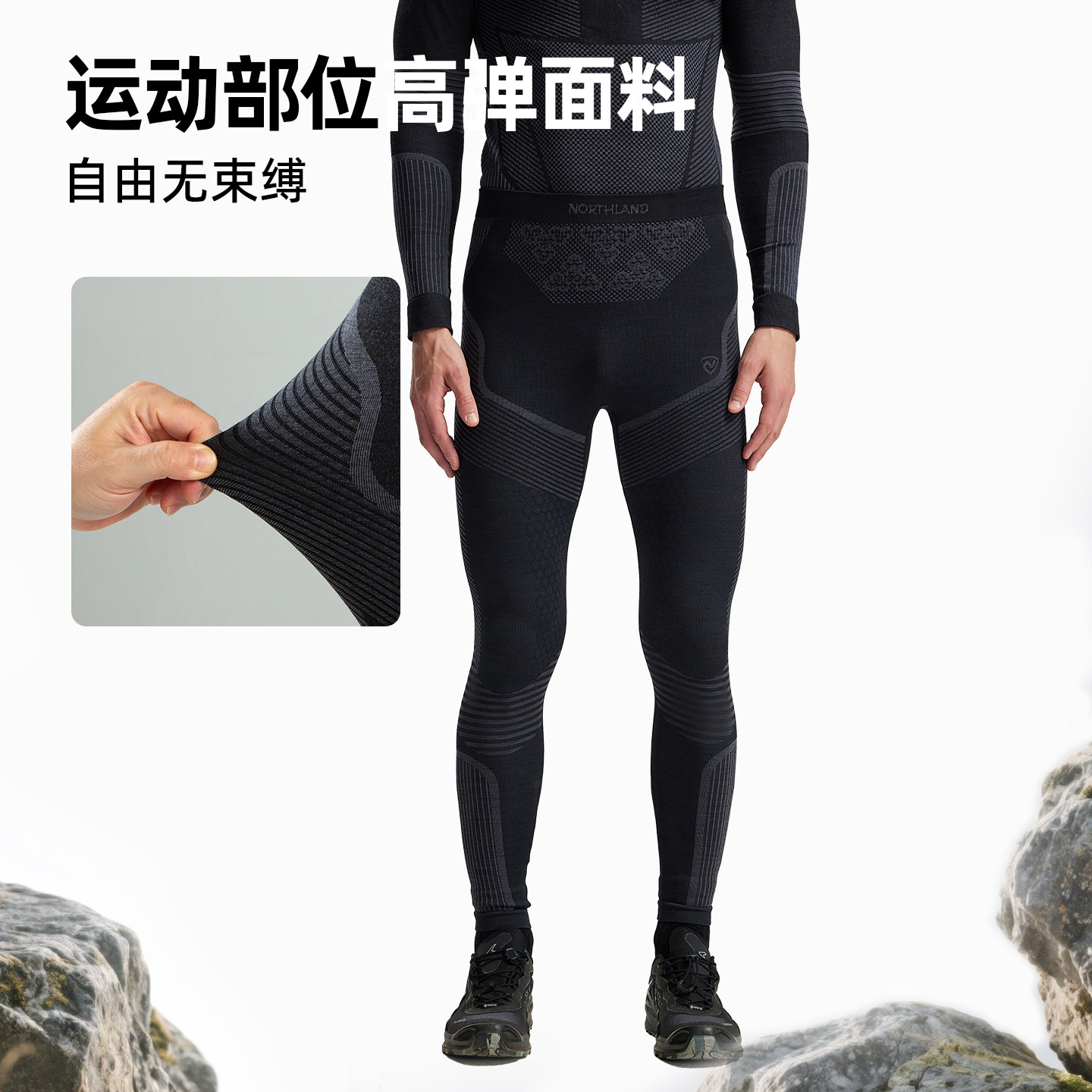 诺诗兰功能内衣长裤男25秋冬新美利奴羊毛徒步登山弹力打底内搭裤