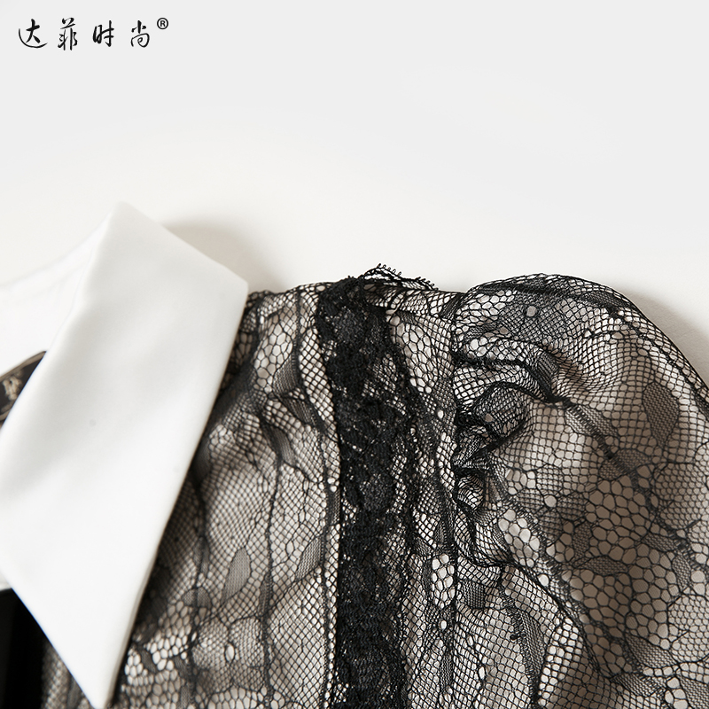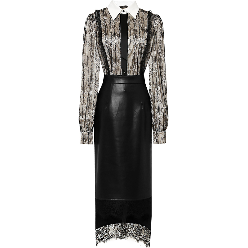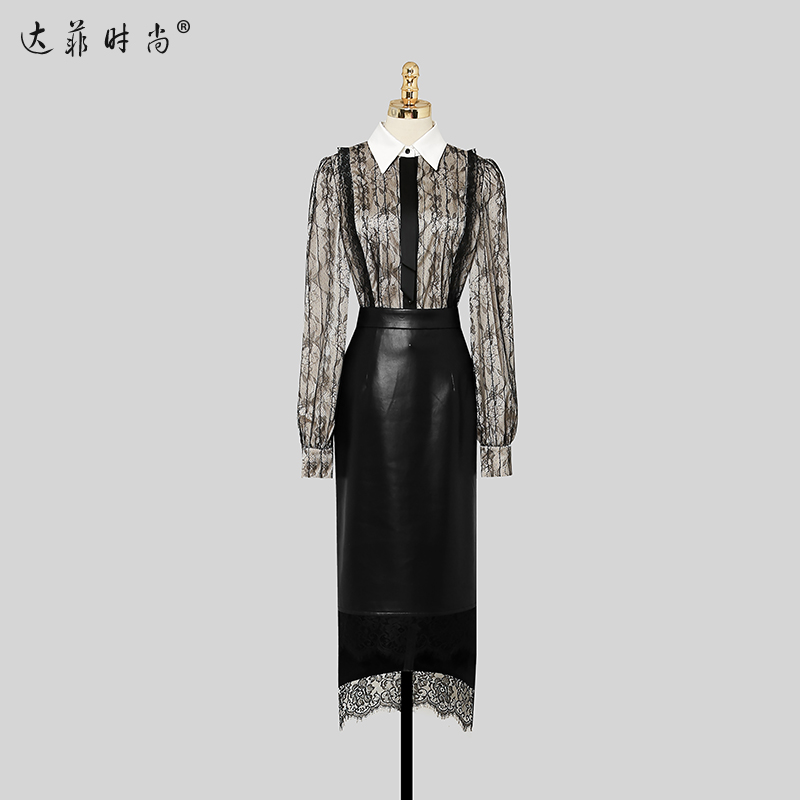 20255秋冬新款女装时尚蕾丝领结帅气干练衬衣皮半裙一步裙套装