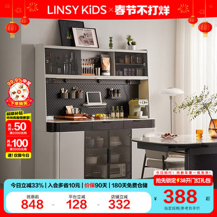 林氏KIDS家居奶油风折叠伸缩餐桌岛台一体新款餐边柜林氏木业清仓
