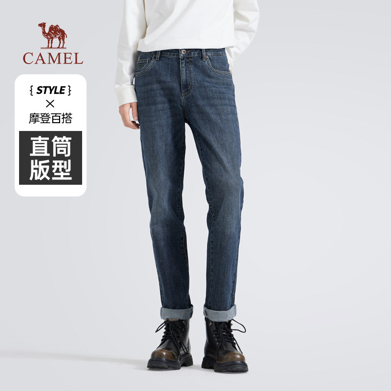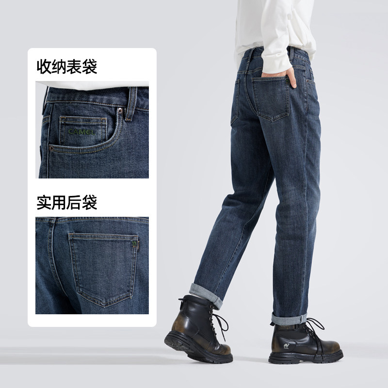 骆驼男装直筒牛仔裤男士2025春秋季复古水洗舒适弹力休闲长裤
