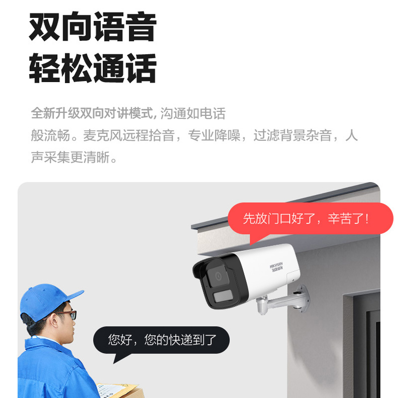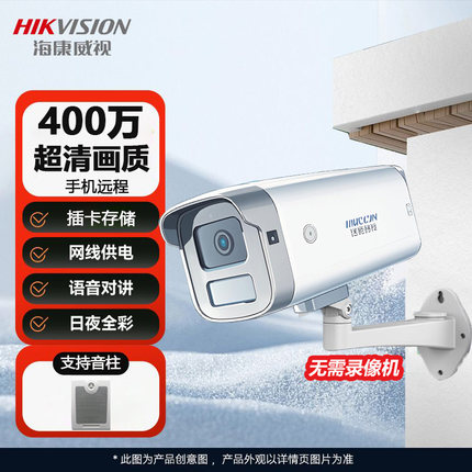 海康威视400万双光poe插卡有线枪机对讲插TF卡存储外接音柱摄像头