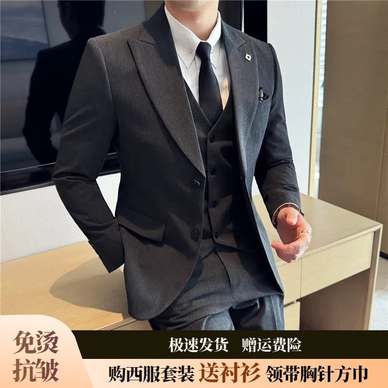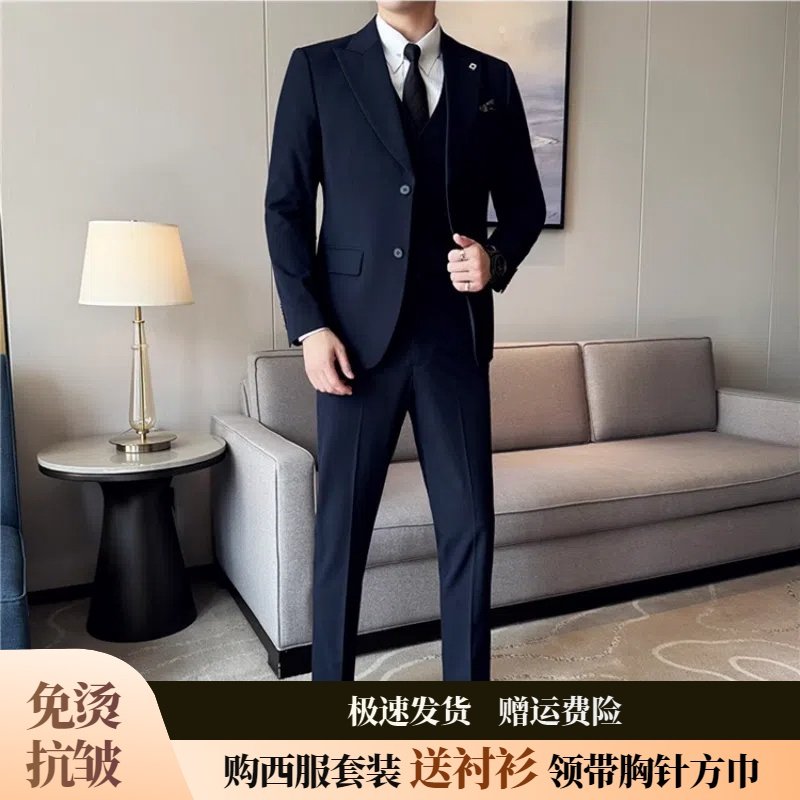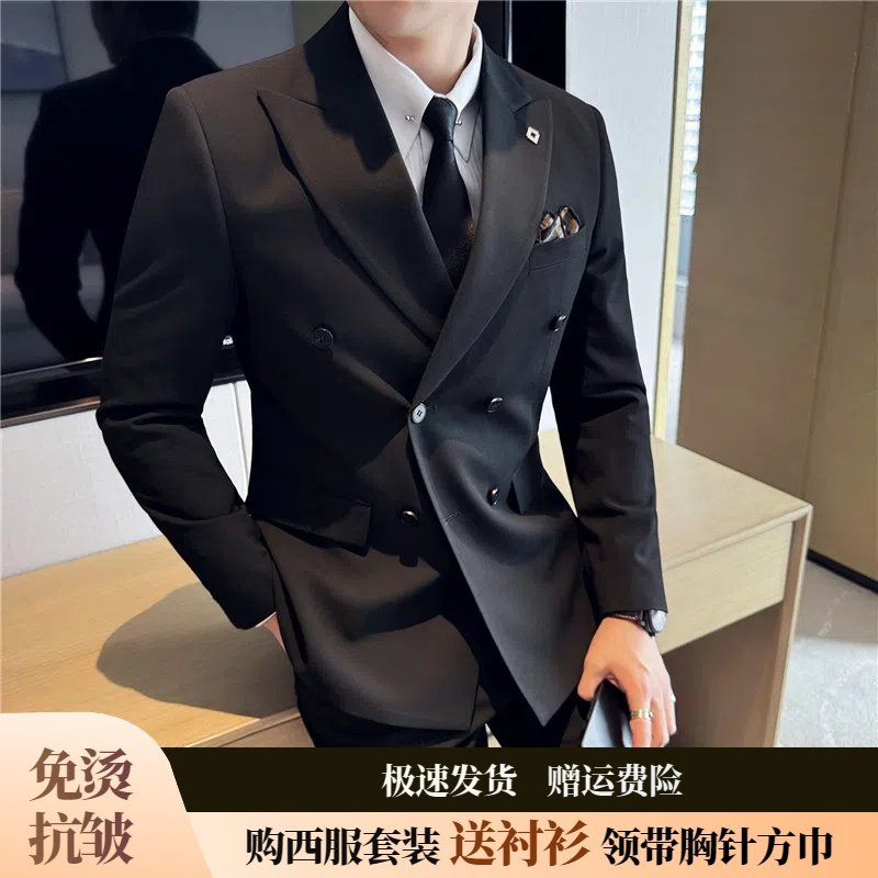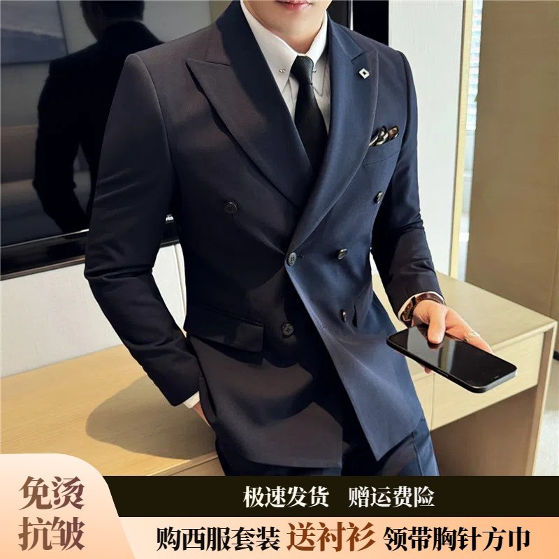 双排扣商务正装新郎西服套装男修身痞帅高级感伴郎结婚礼服小西装