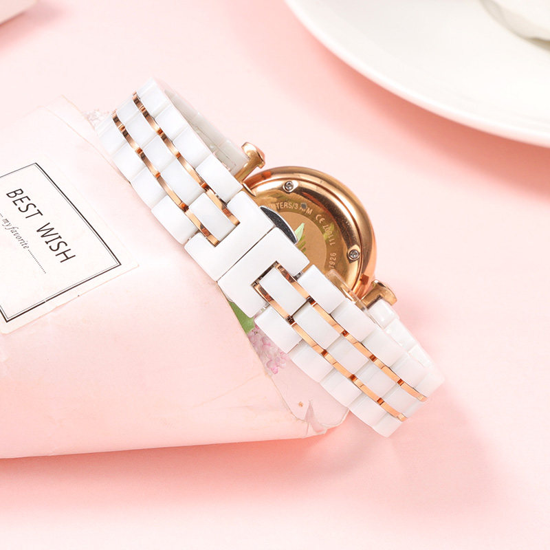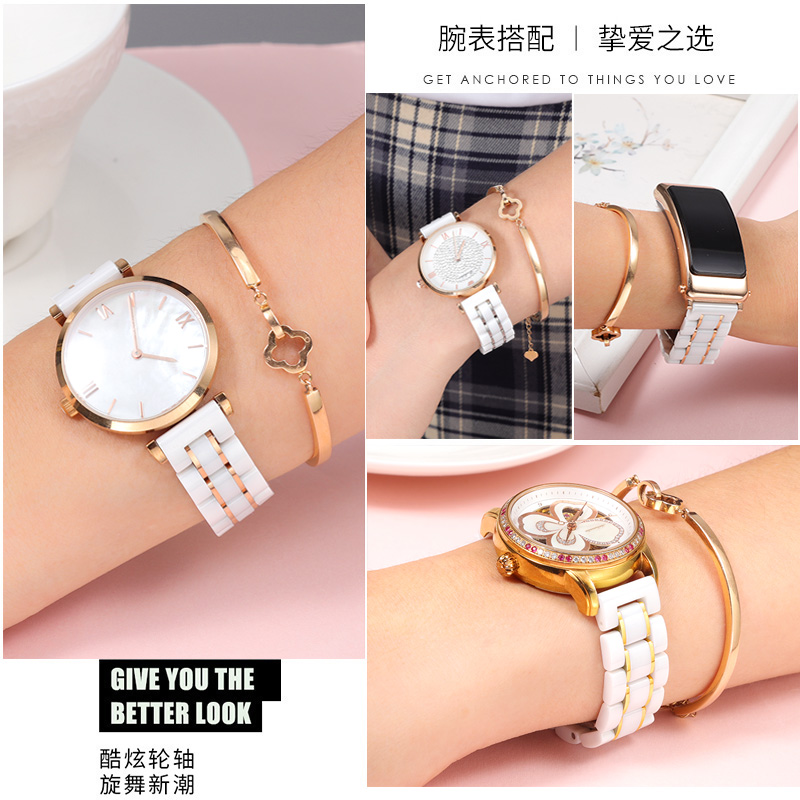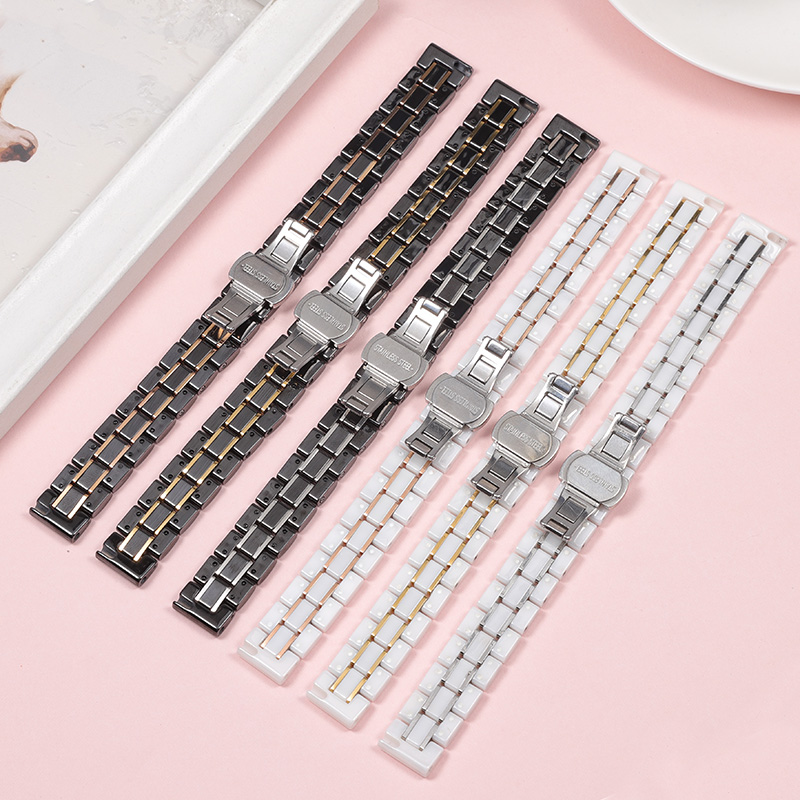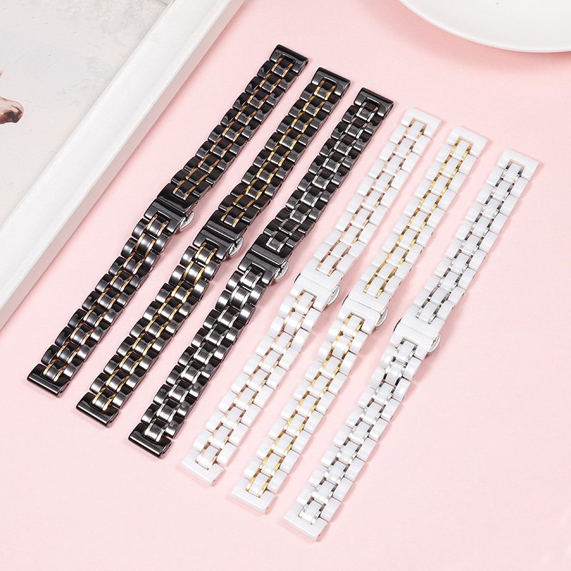 陶瓷手表带女玫瑰金白色表链适配dw阿玛尼飞亚达天梭罗西尼华为B6