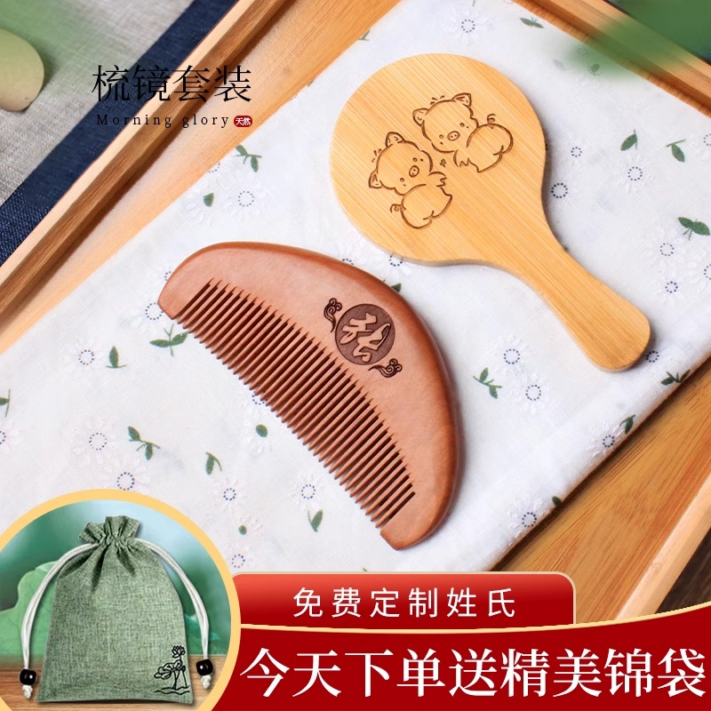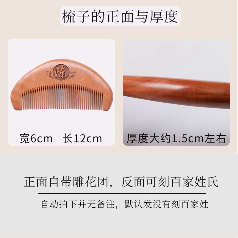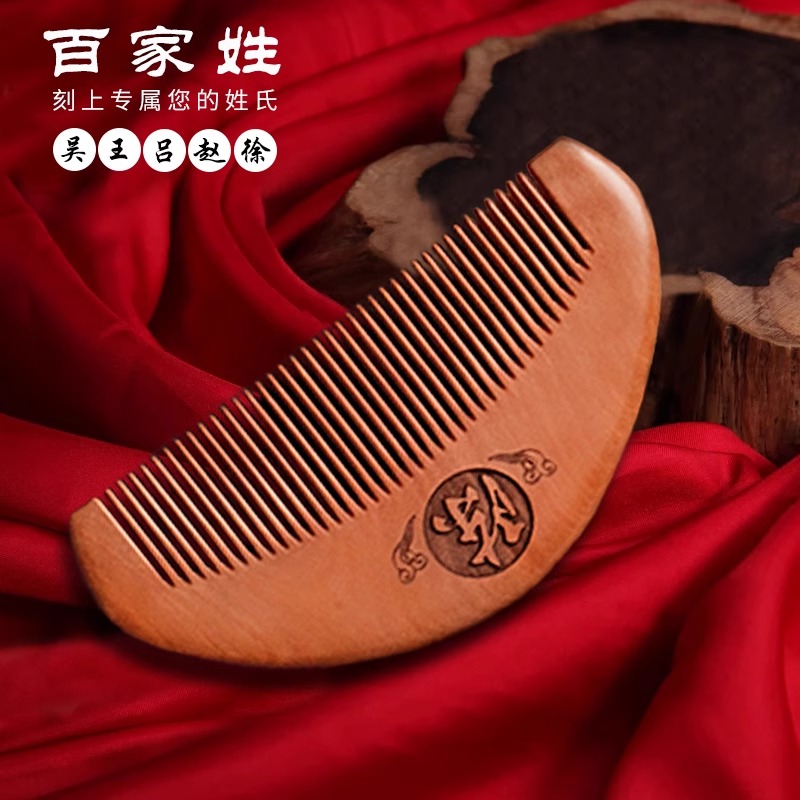 百家姓木梳桃木梳子细齿姓氏木梳古风送女朋女流苏便携可刻字