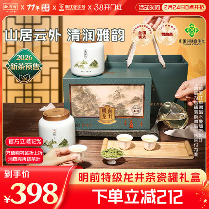 2026新茶预售西湖牌明前特级龙井茶叶200g瓷罐礼盒装送礼送长辈
