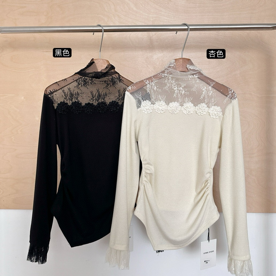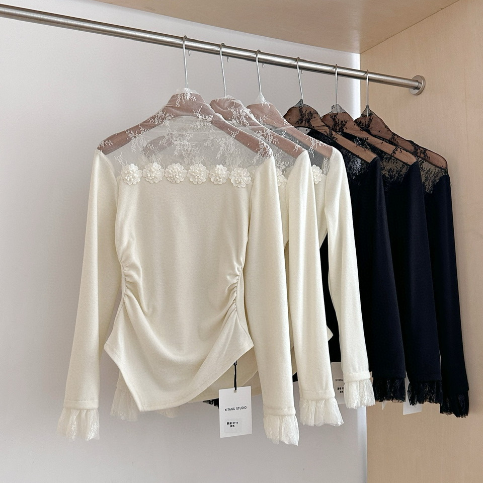 奶油蔷薇秋冬蕾丝打底衫气质长袖法式拼接设计感