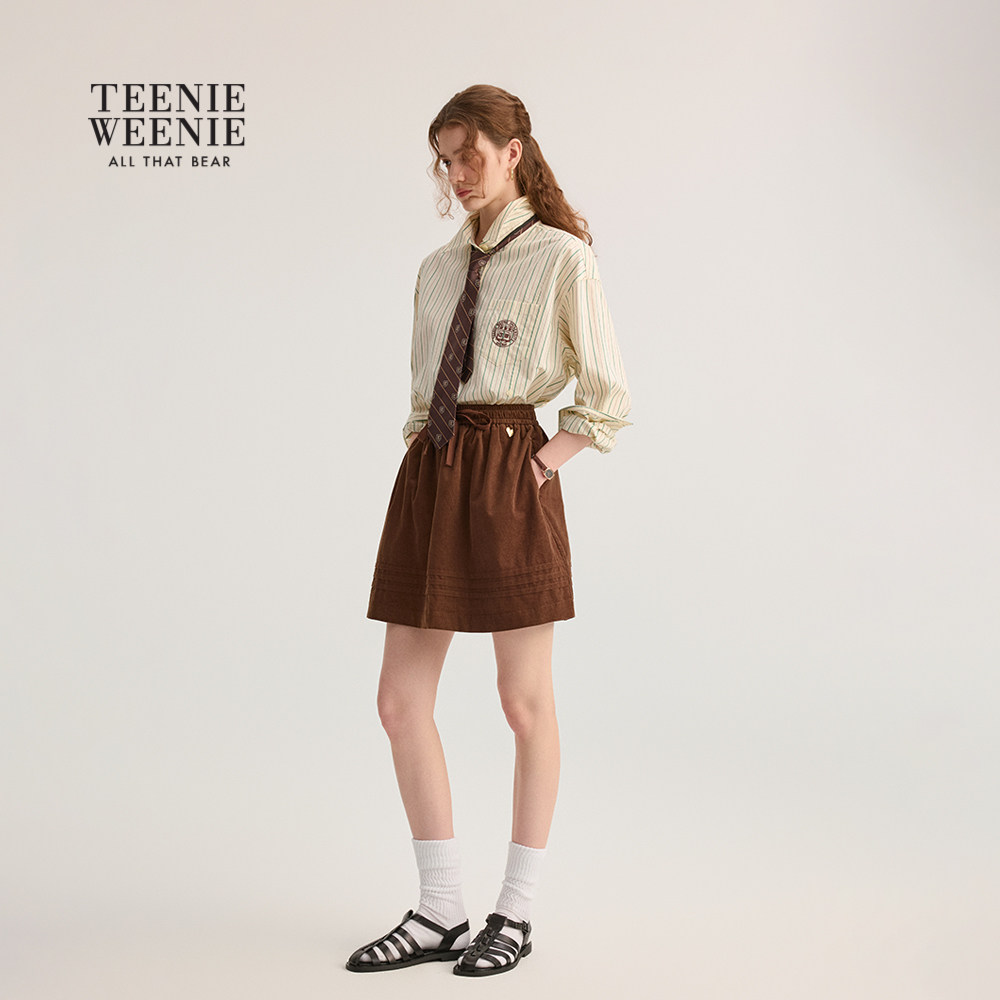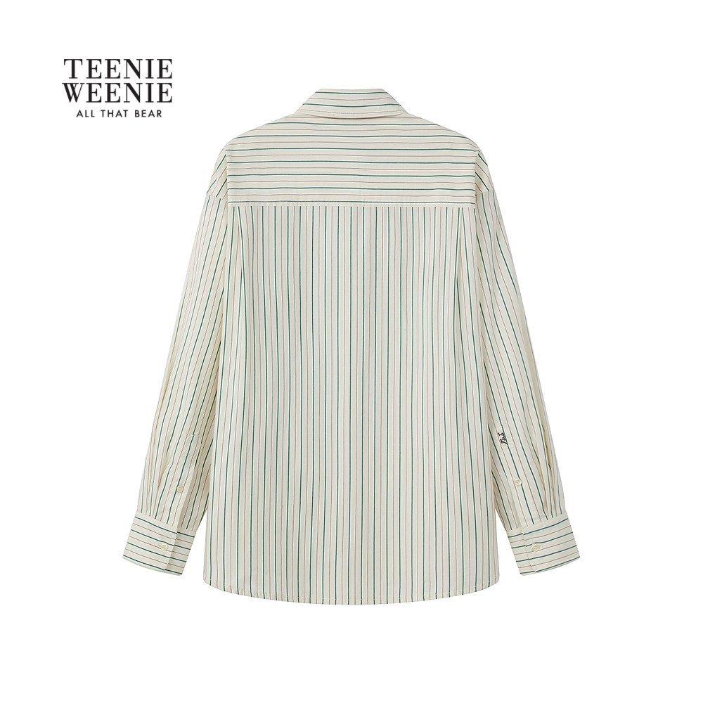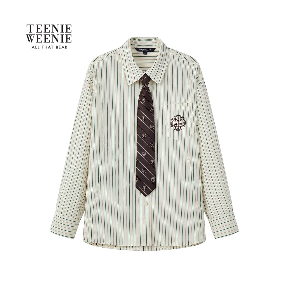 TeenieWeenie小熊女装2025年秋季新款优雅宽松条纹学院风领带衬衫