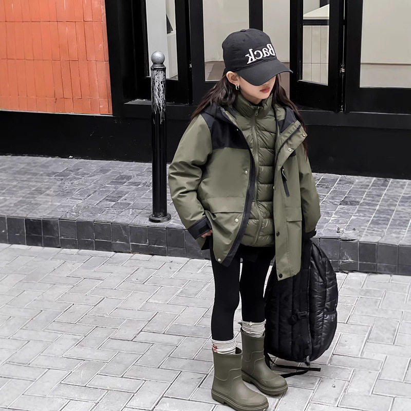 户外可脱卸儿童冲锋衣羽绒服秋冬新款男女童装新国标90绒保暖外套