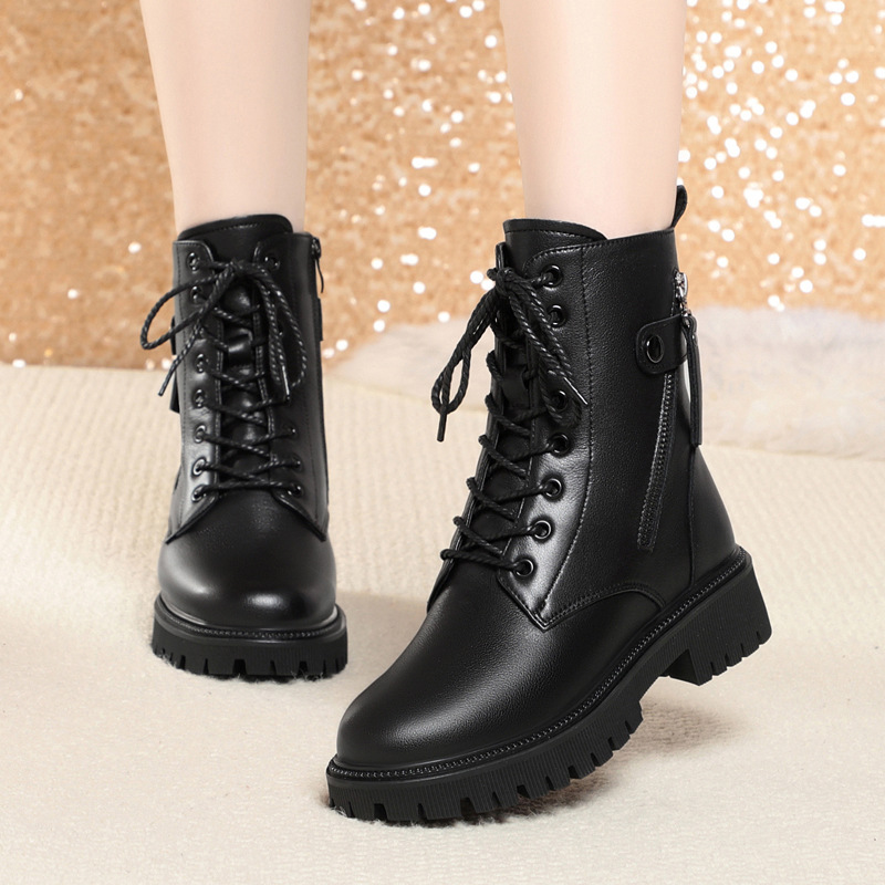 冬季马丁靴女鞋加绒加厚底短靴牛