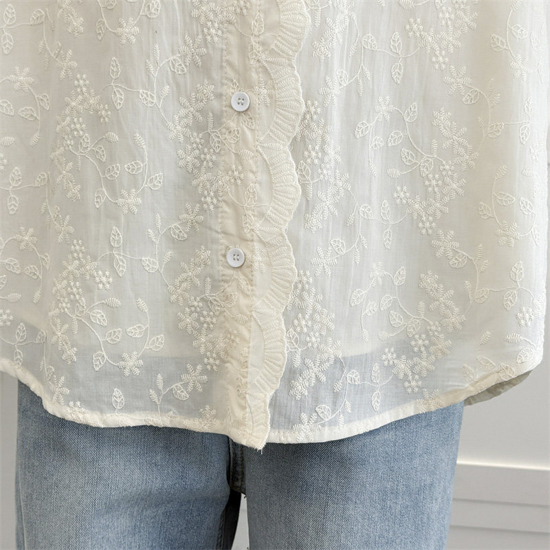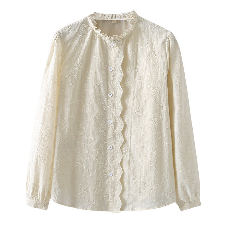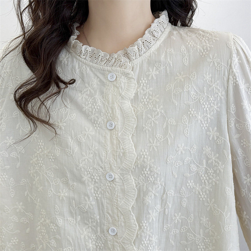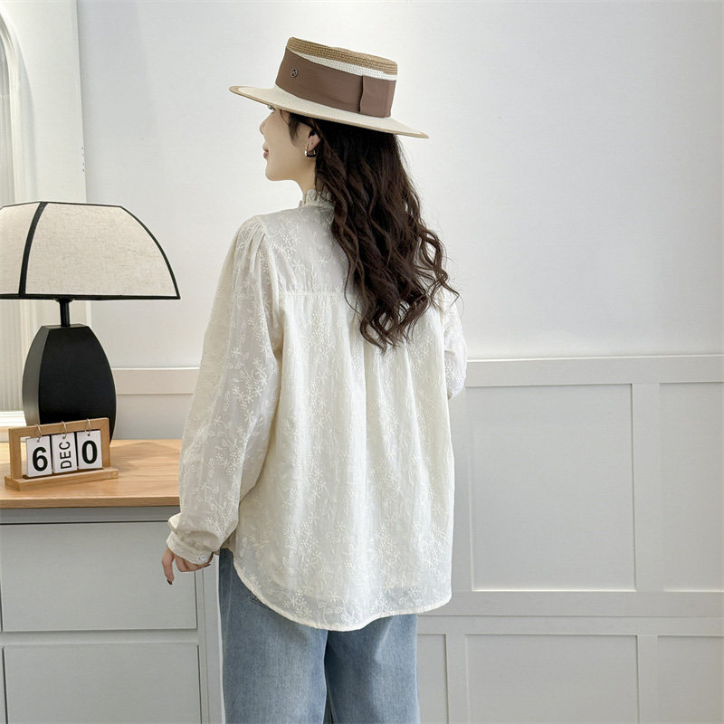 衬衫2025新款女大码春装胖mm时尚法式花边领拼接刺绣打底双层衬衣