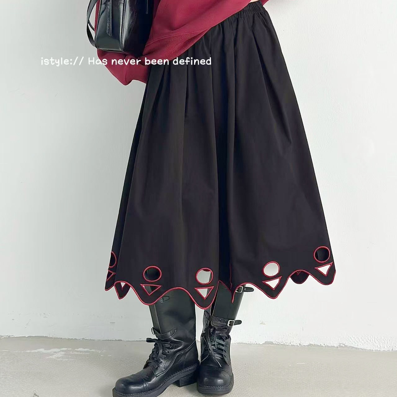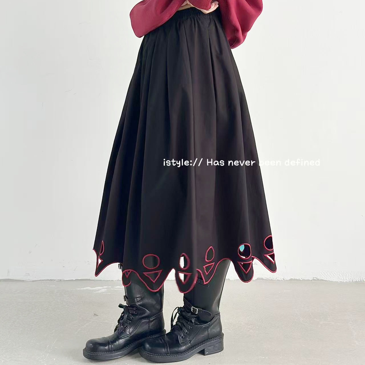 2025秋冬韩版istyle新款中长裙法式镂空刺绣裙摆伞裙高腰半身裙女