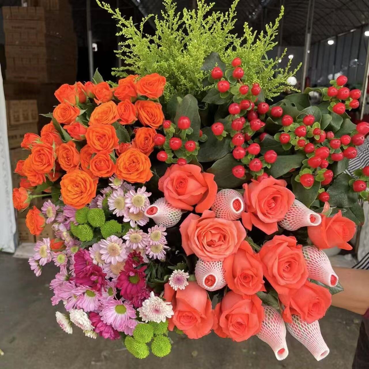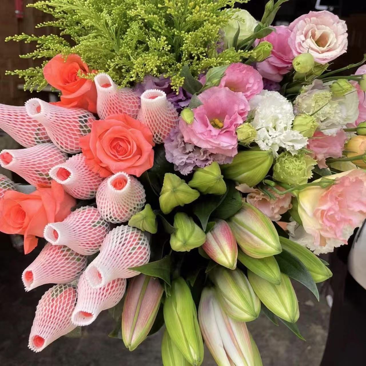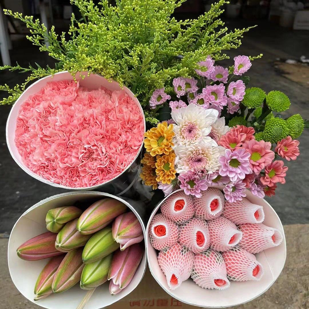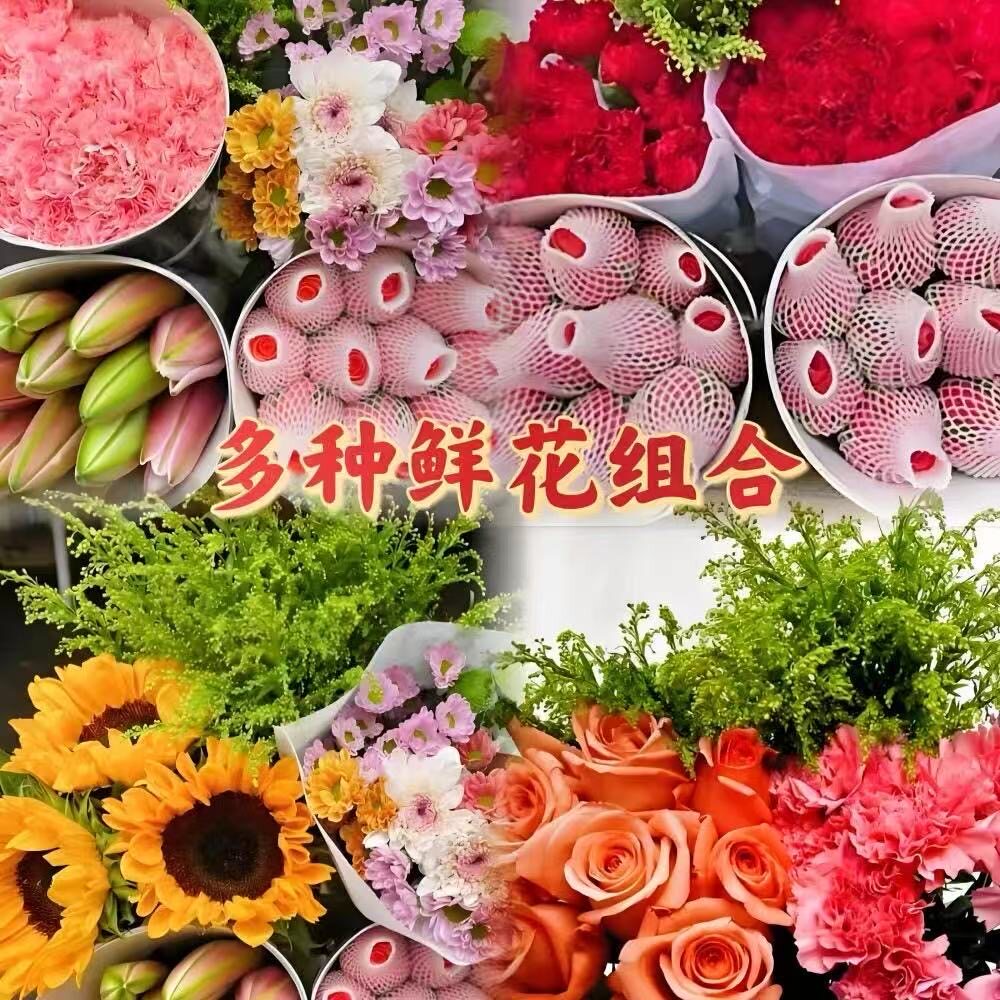 玫瑰鲜切花组合四件套包邮水养送人香水百合康乃馨向日葵混搭花束