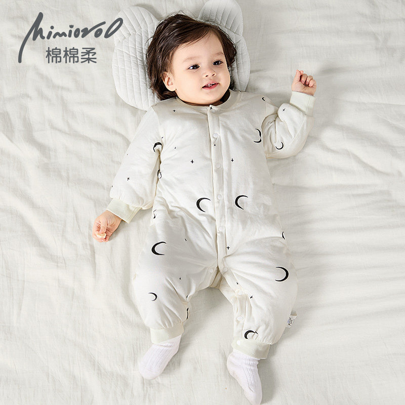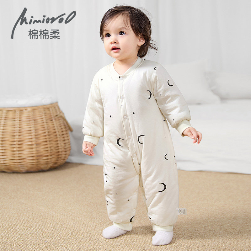 婴儿连体衣冬季夹棉宝宝睡衣秋冬加厚恒温棉衣纯棉婴幼儿连身衣服