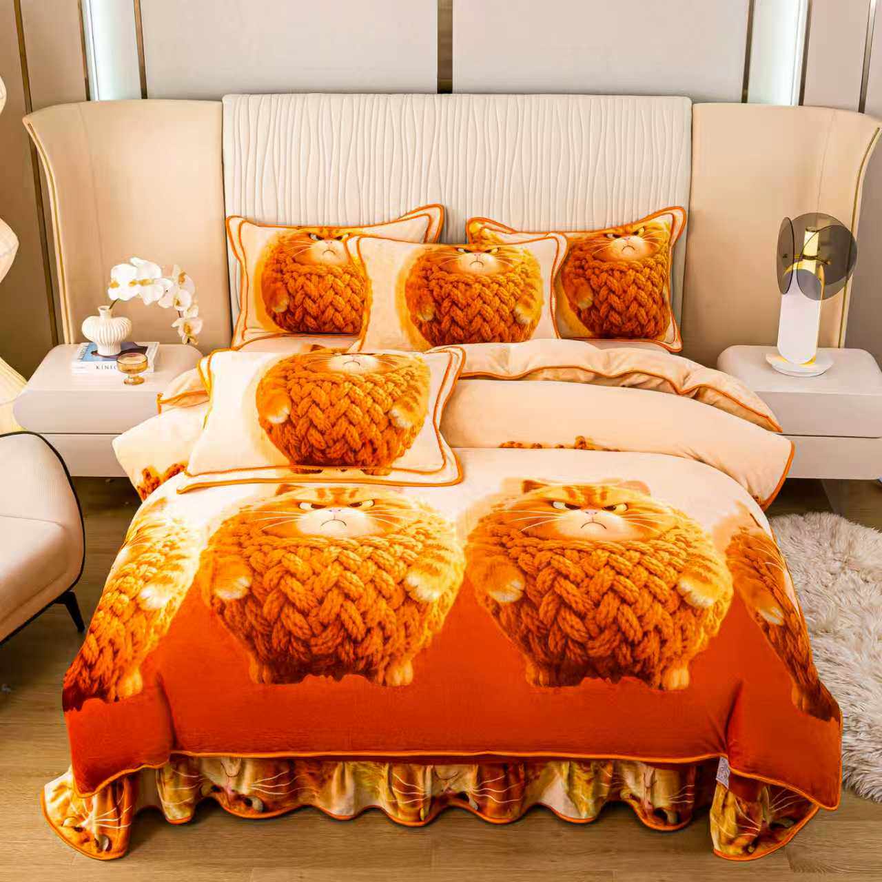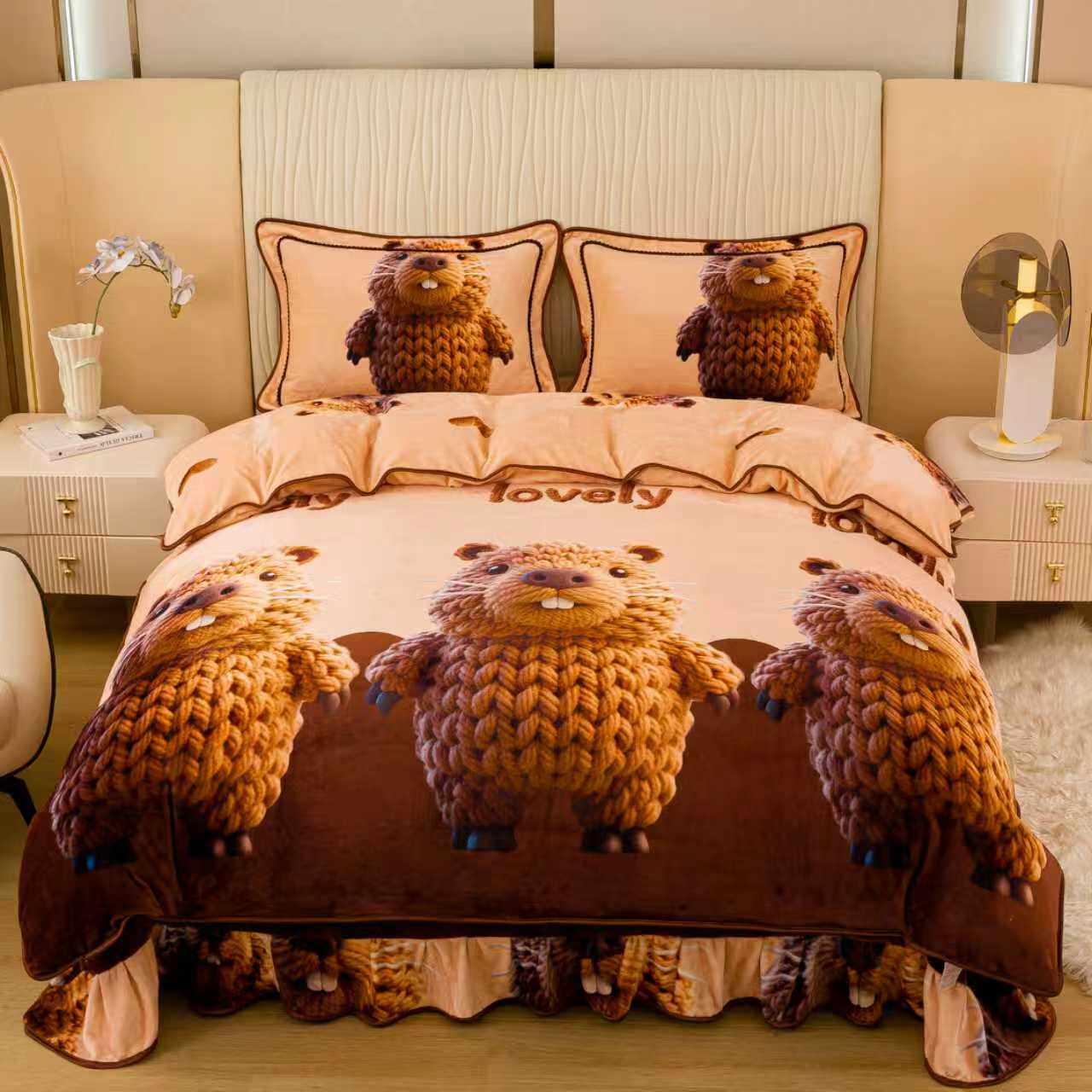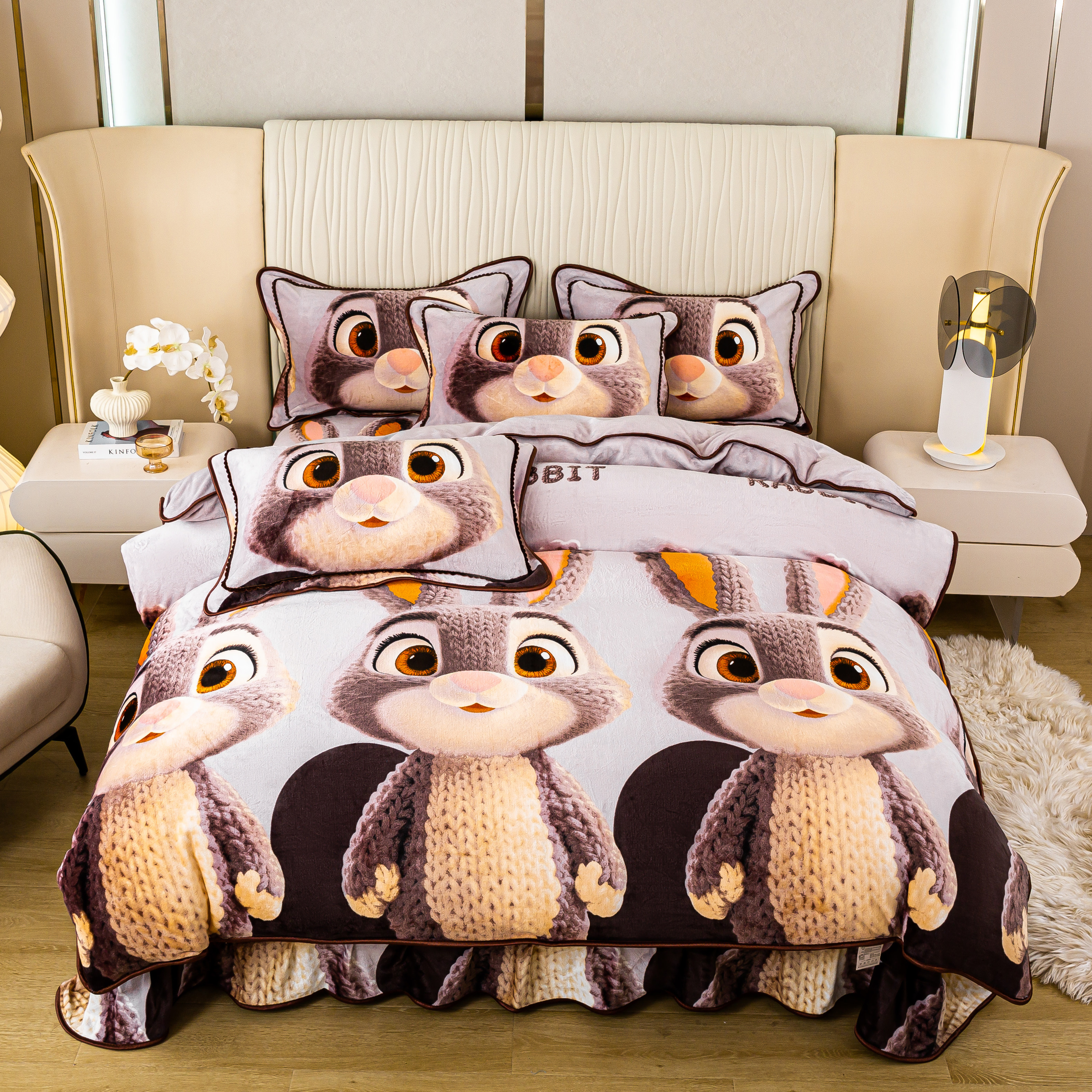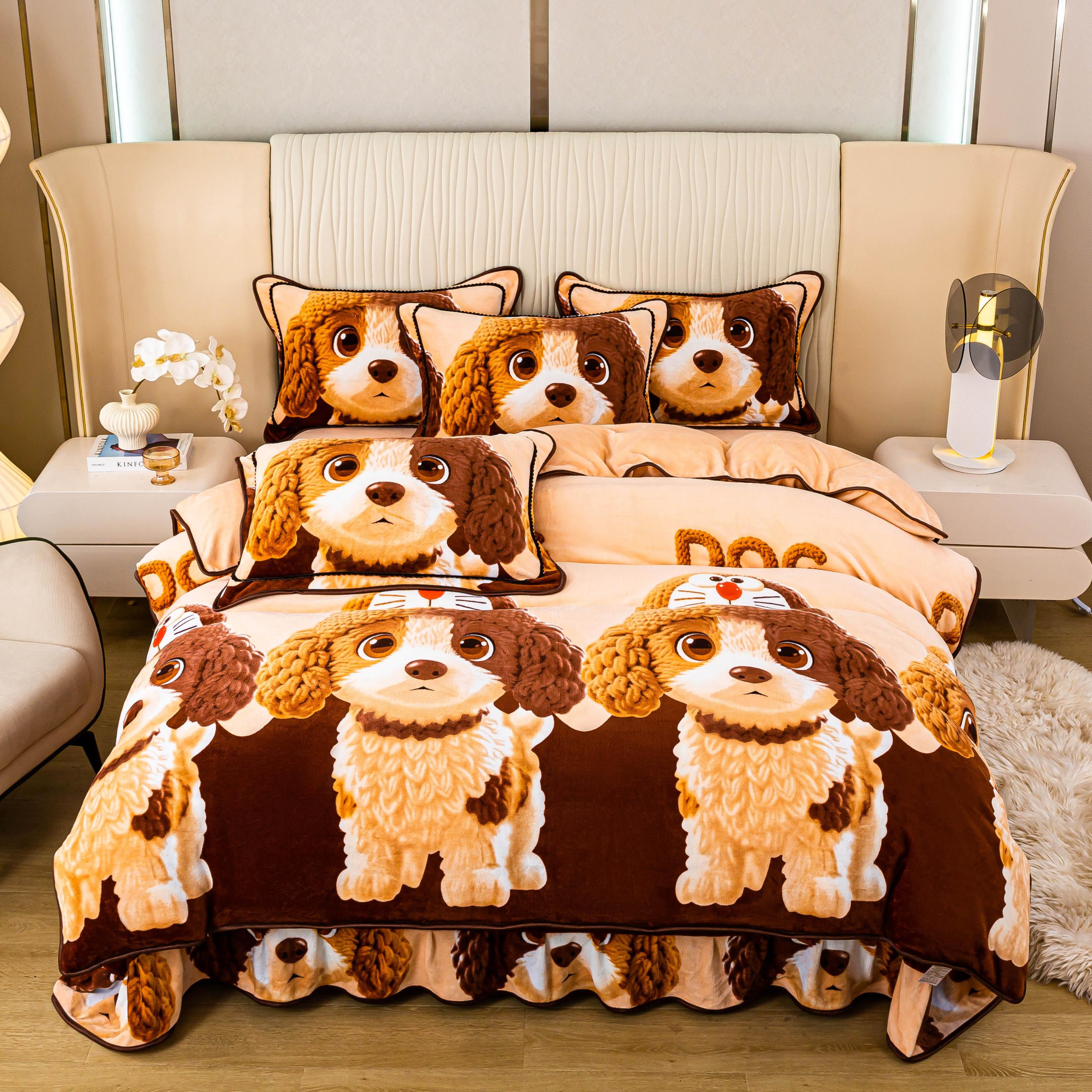 8斤加厚5D牛奶绒四件套卡通珊瑚绒被套双面绒法兰绒秋冬保暖床品