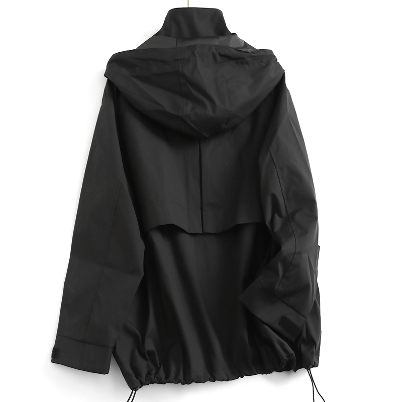 纯色宽松连帽冲锋衣外套女2024秋休闲运动户外登山服工装夹克H132