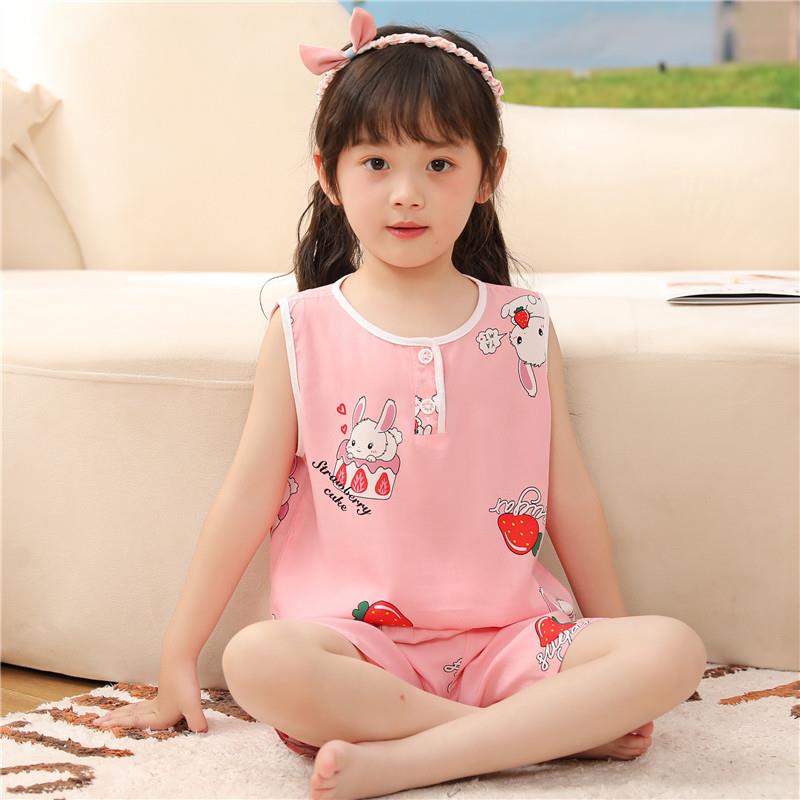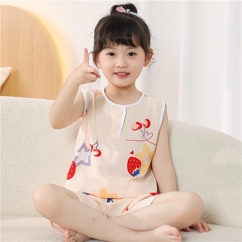 夏季儿童家居服男童女童薄绵绸背心小孩夏天无袖套装宝宝棉绸睡衣