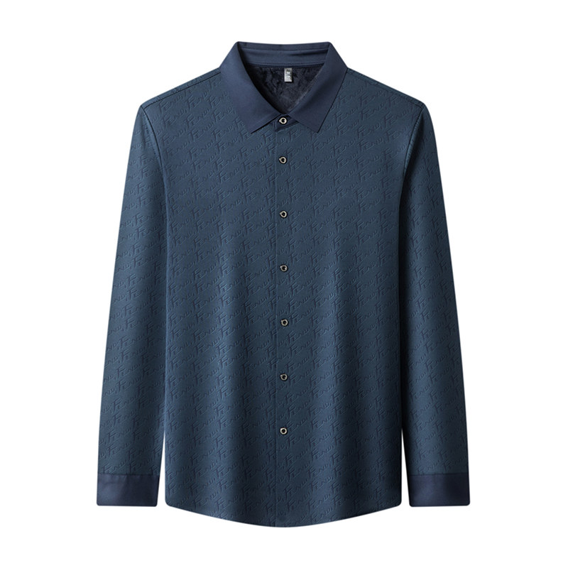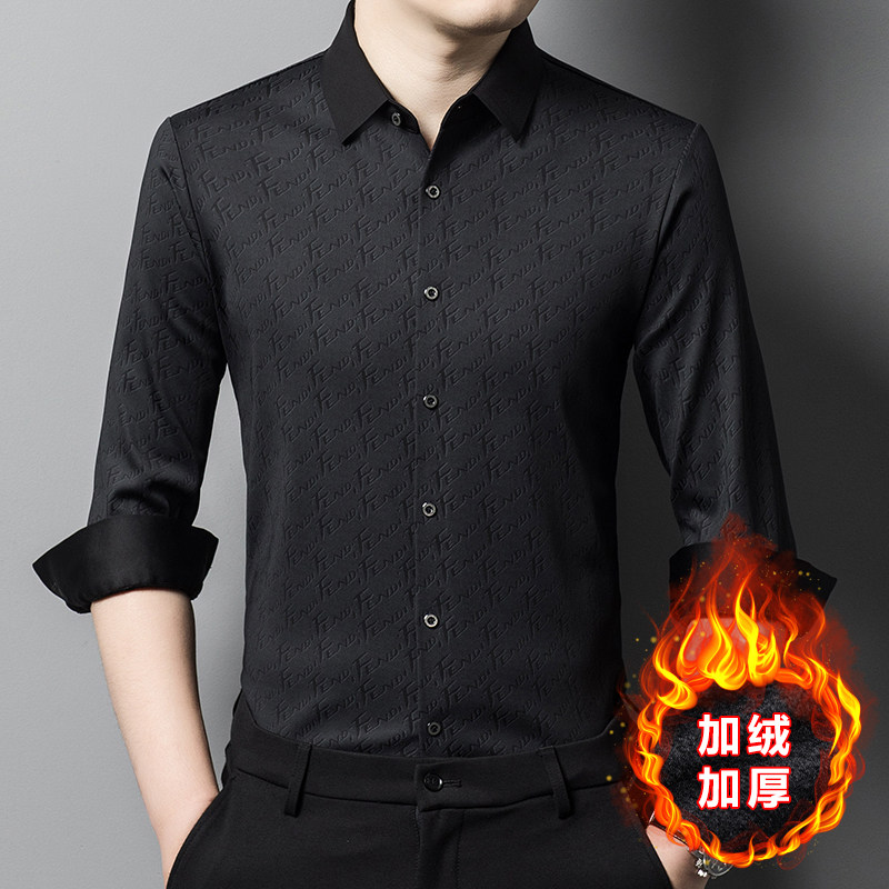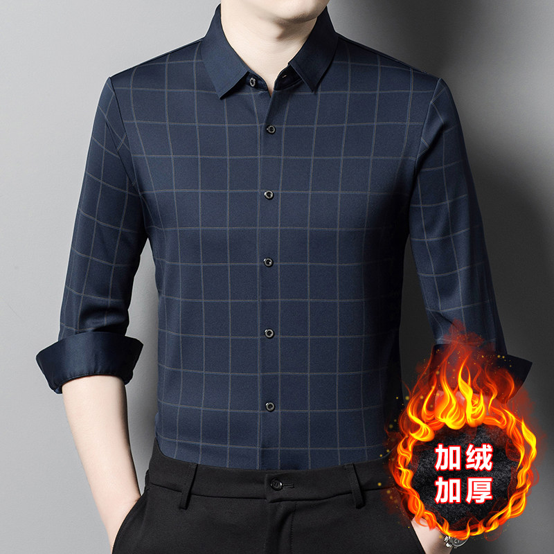 鄂尔多斯产纯羊绒衬衫男士高端加厚加绒保暖亮面丝滑免烫羊毛衬衣