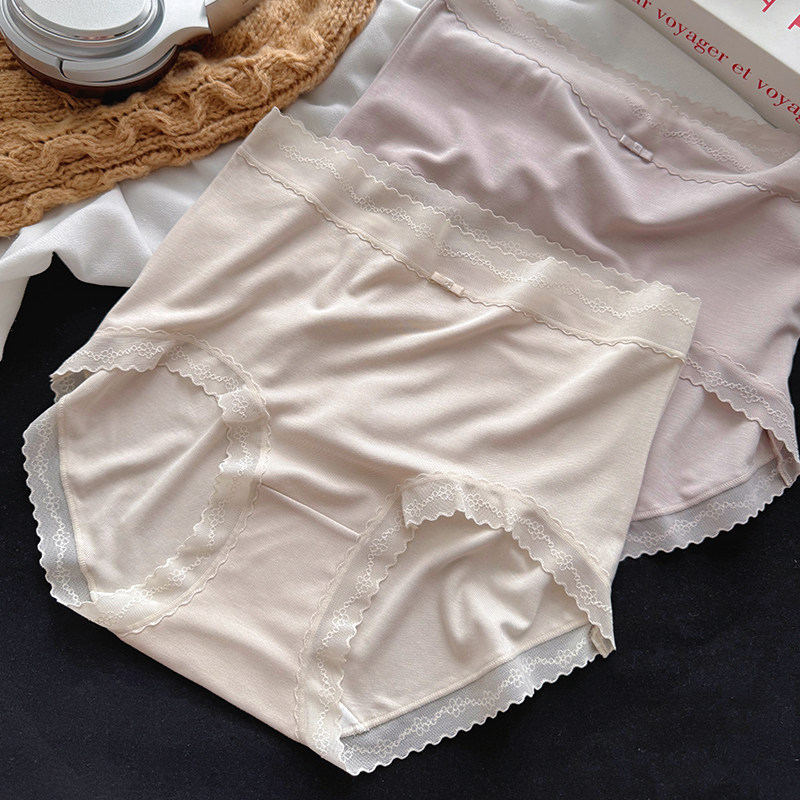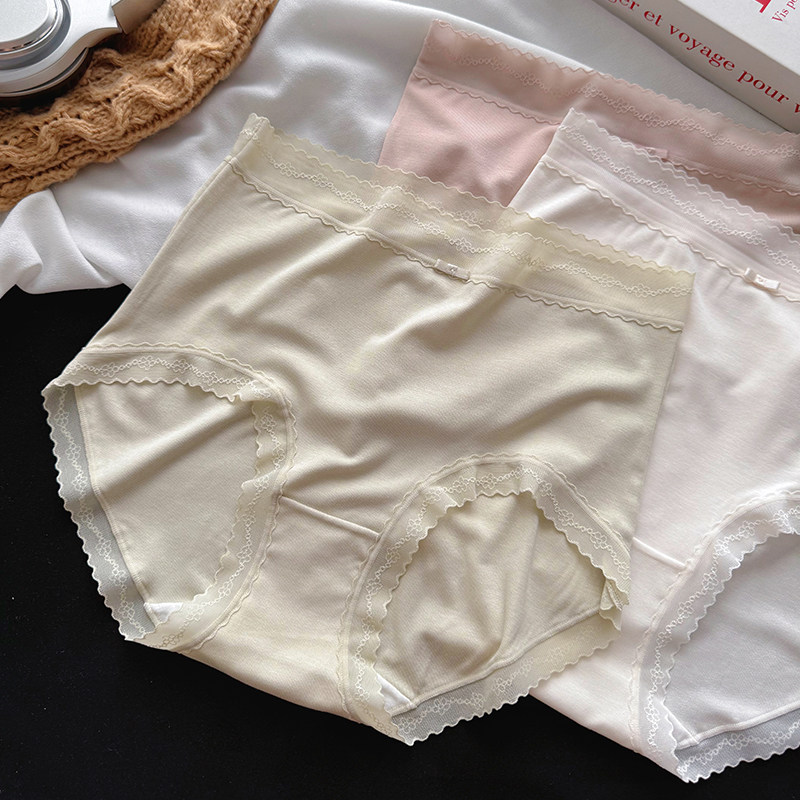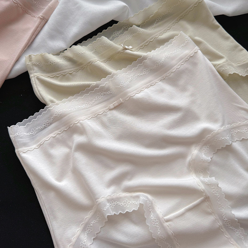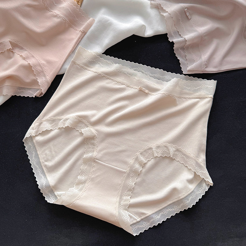 50支高腰微收腹内裤女包臀蕾丝边细腻顺滑纯棉裆三角裤软糯裸感