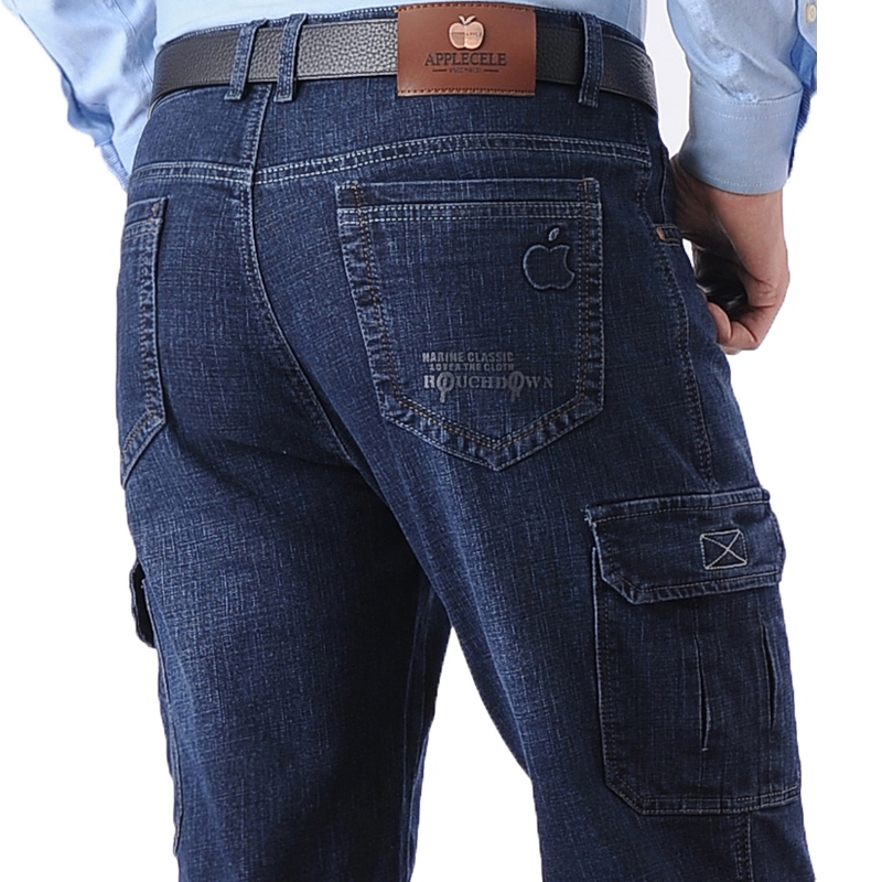 正品苹果牛仔裤男秋冬季厚款直筒宽松弹力中年男士工装裤高腰休闲
