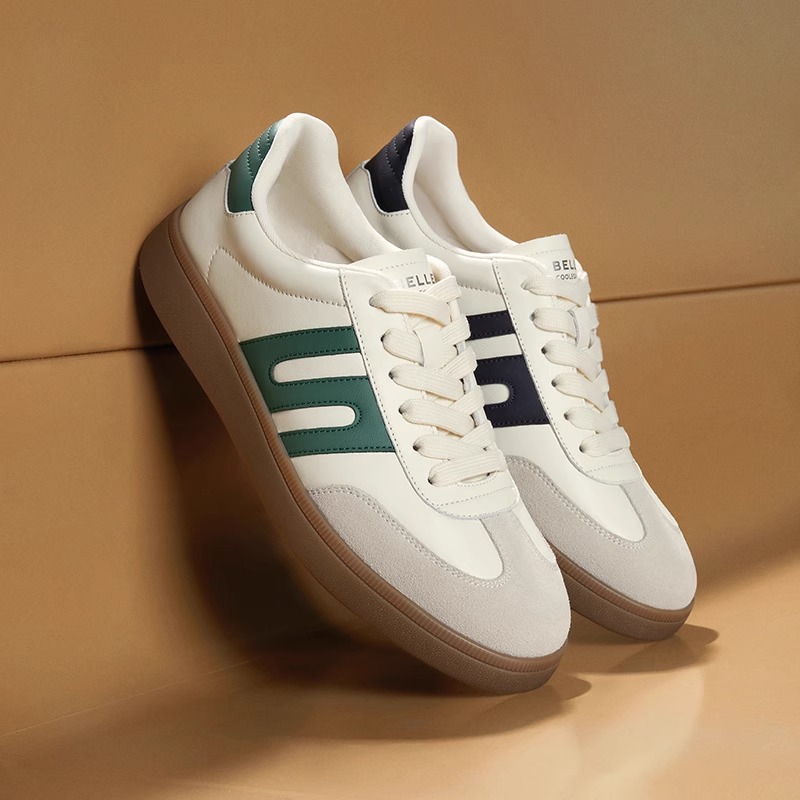 百丽撞色休闲鞋男鞋秋季商场同款复古德训鞋运动板鞋透气8LL01CM4