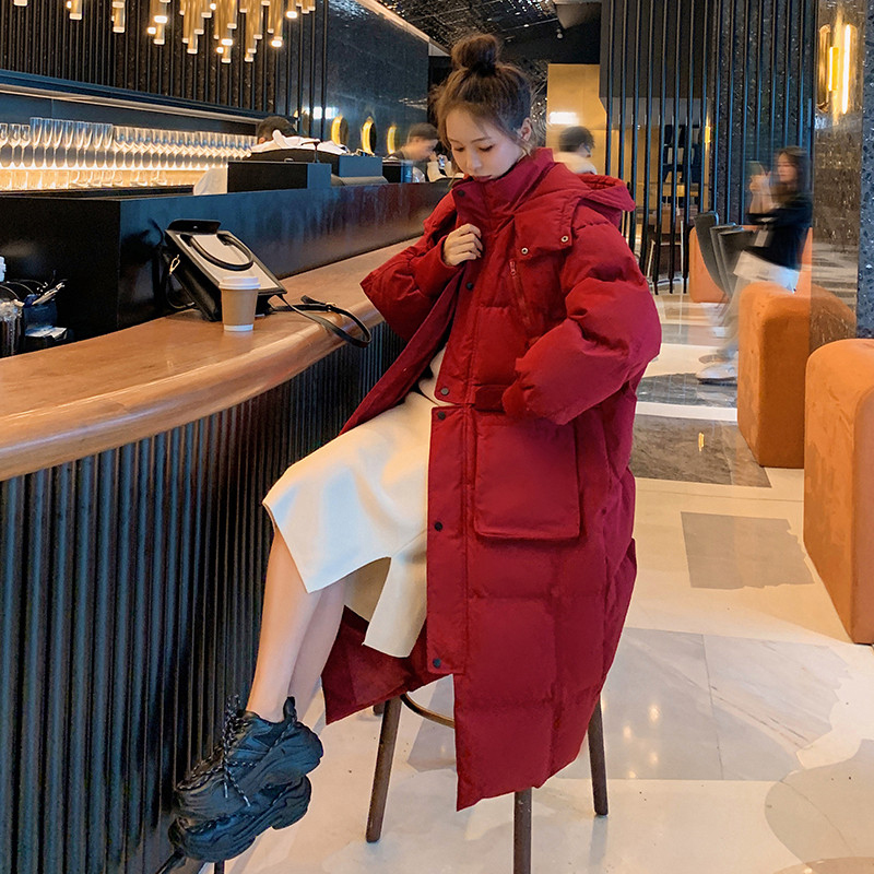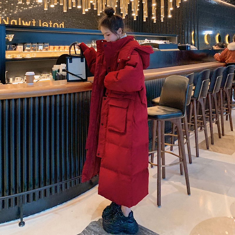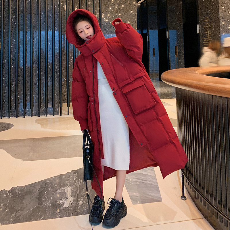 大码韩版ins中长款过膝连帽棉服