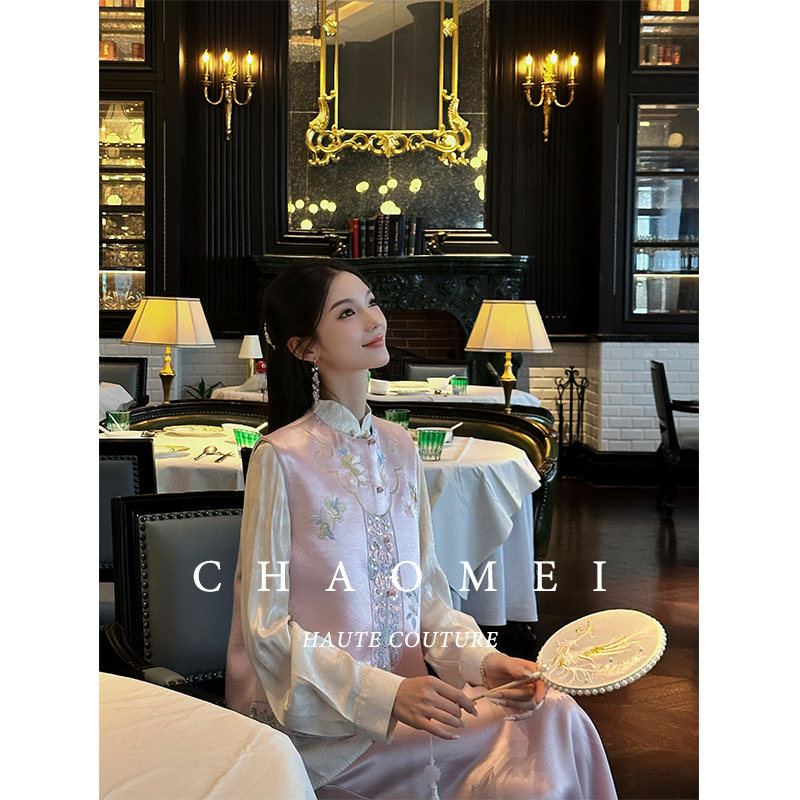 MOPASSANT【花涧谣】新中式国风女装双面穿马甲衬衫半裙套装