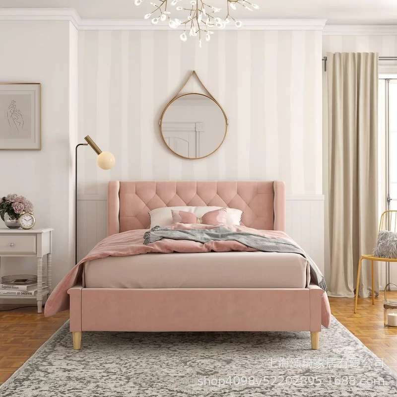 美式轻奢布艺公主床现代简约软包儿童床ins小户型主卧1.8米双人床