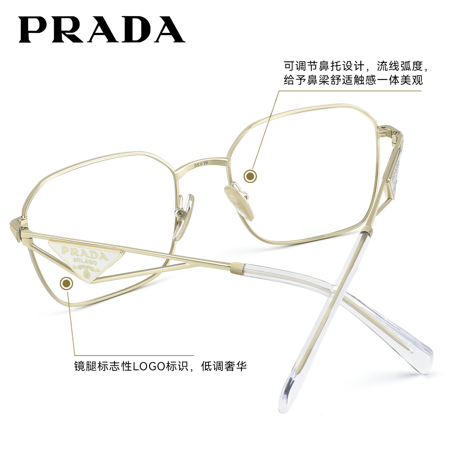 Prada普拉达眼镜框男金丝大框明星同款时尚近视眼镜架女0PR A51V