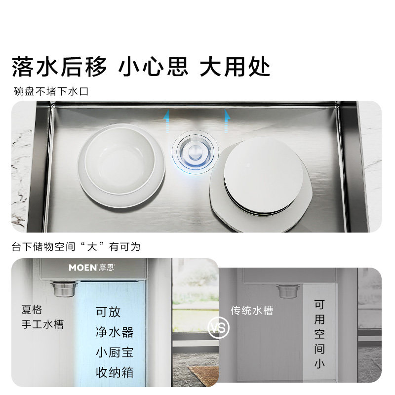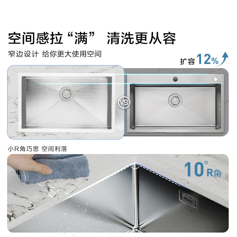 摩恩夏格系列水槽大单槽洗菜盆手工台下盆不锈钢厨房洗碗槽35131