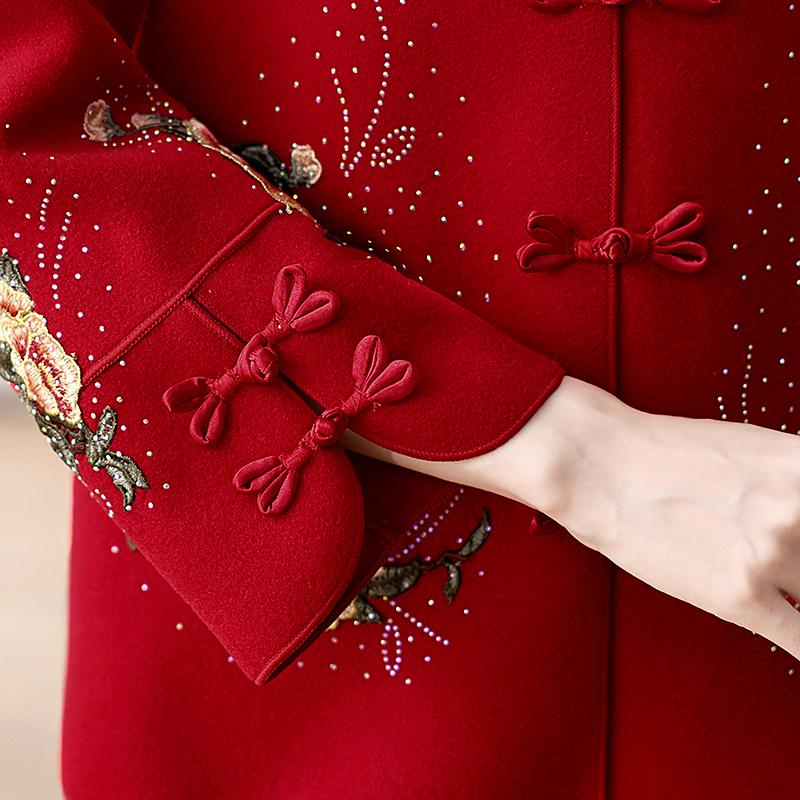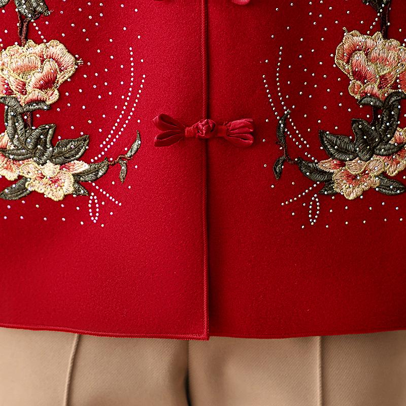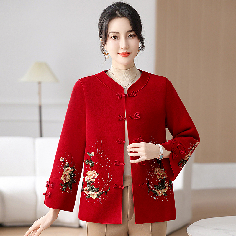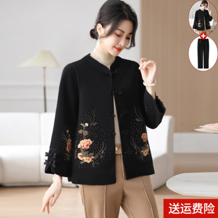 妈妈秋装气质新中式外套中年女洋气国风毛呢中老年人春秋绣花上衣