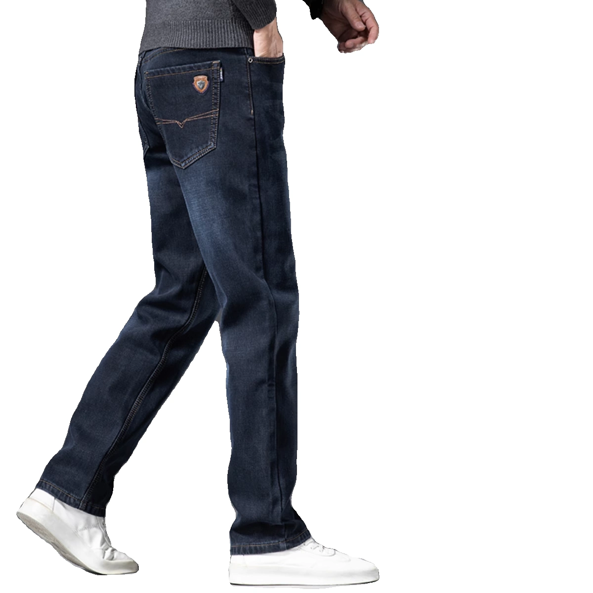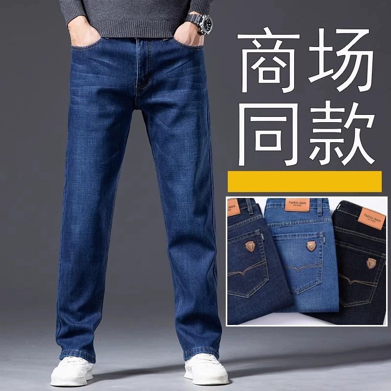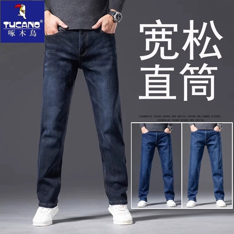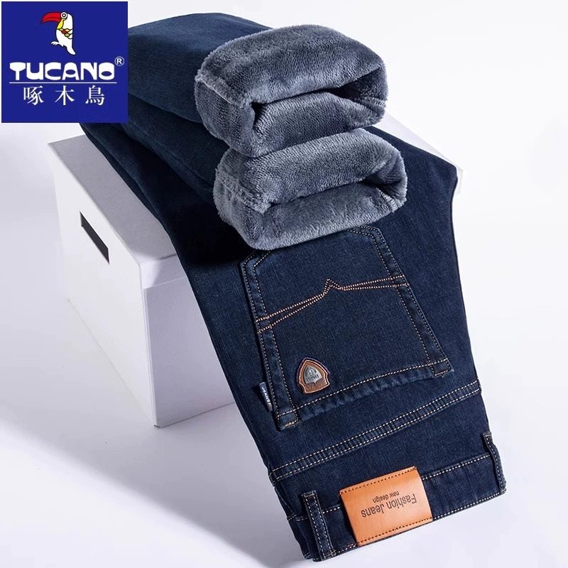 啄木鸟2025秋冬新款加绒加厚牛仔裤男宽松直筒弹力商务冬季长裤男
