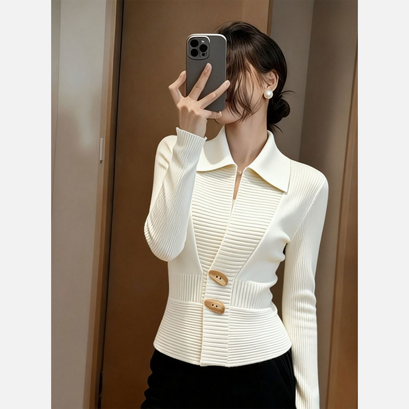 白色毛衣女秋洋气时髦设计感小众巨好看独特漂亮气质掐腰针织上衣