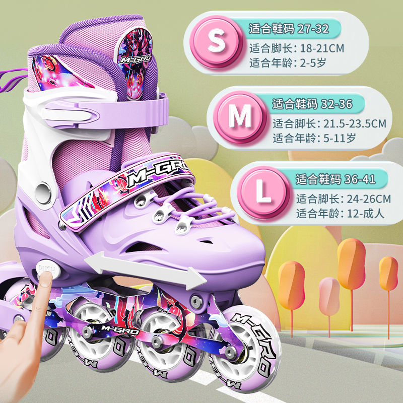 轮滑鞋男女童儿童滑冰鞋旱冰鞋直排轮初学者专业溜冰鞋可调闪光轮