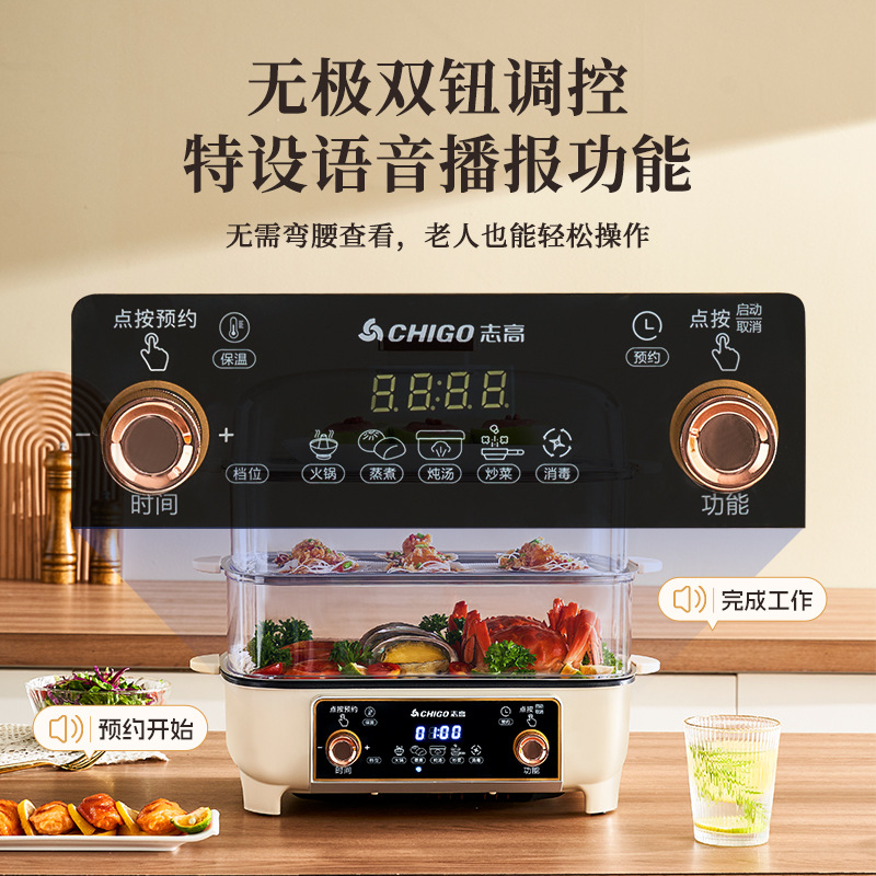 志高智能电蒸锅多功能家用三层家用蒸锅新款蒸箱煮炖锅一体早餐机