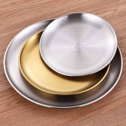 304不锈钢盘子金色加厚圆盘水果盘蛋糕盘骨碟烤肉盘托盘 韩式餐具