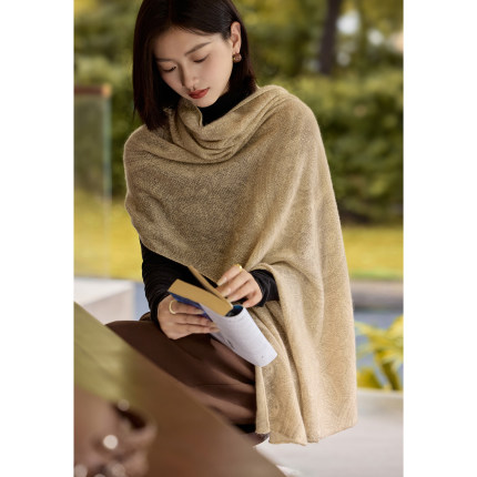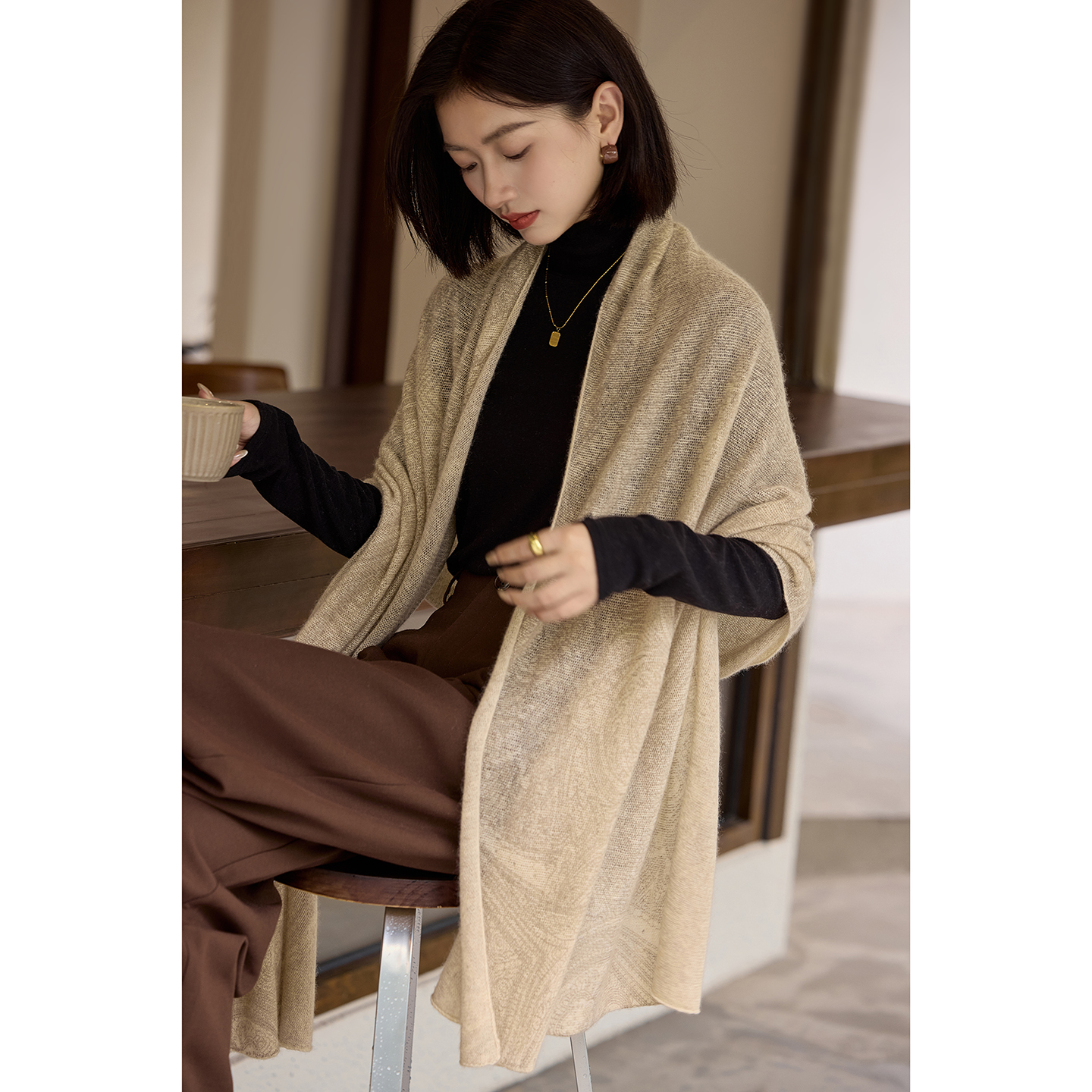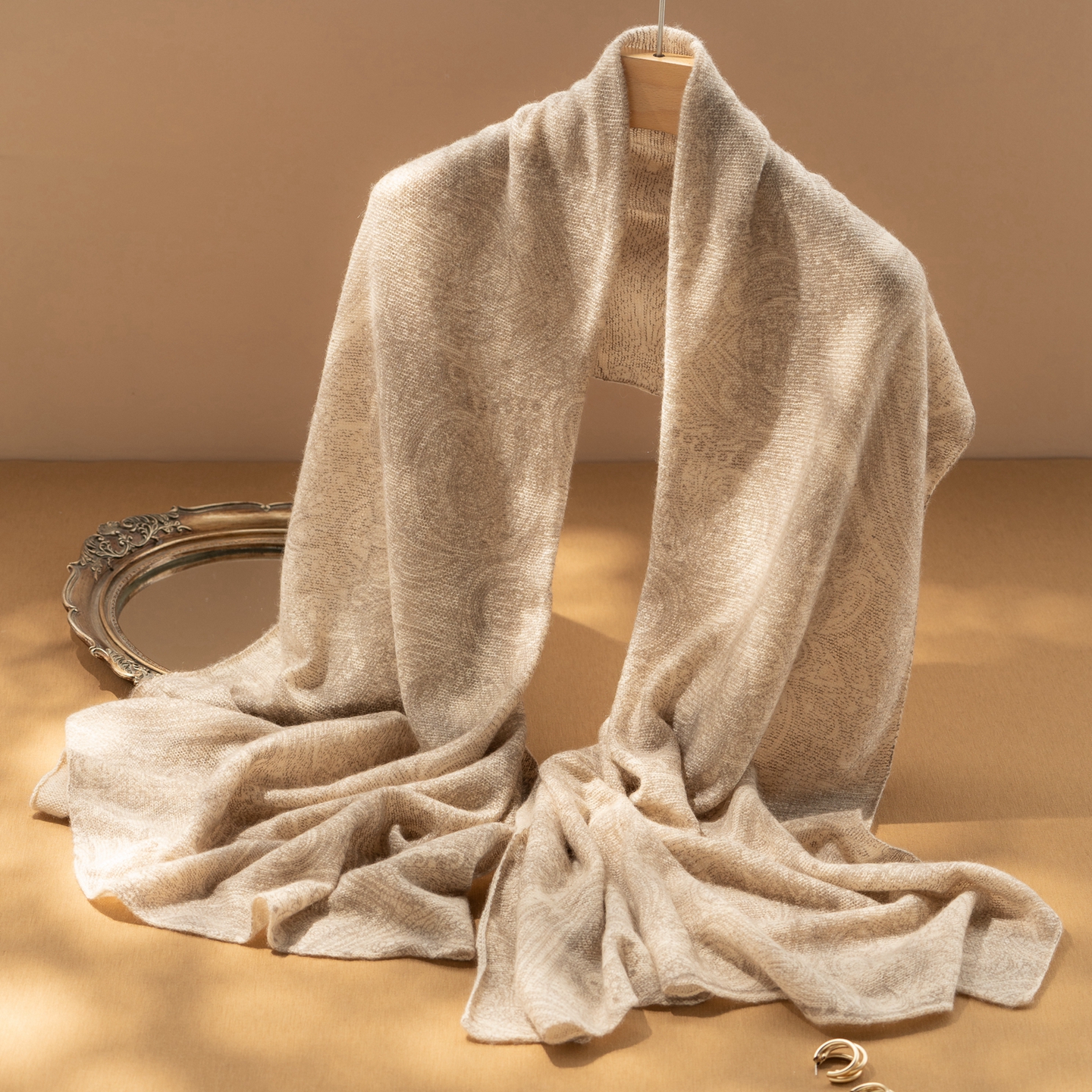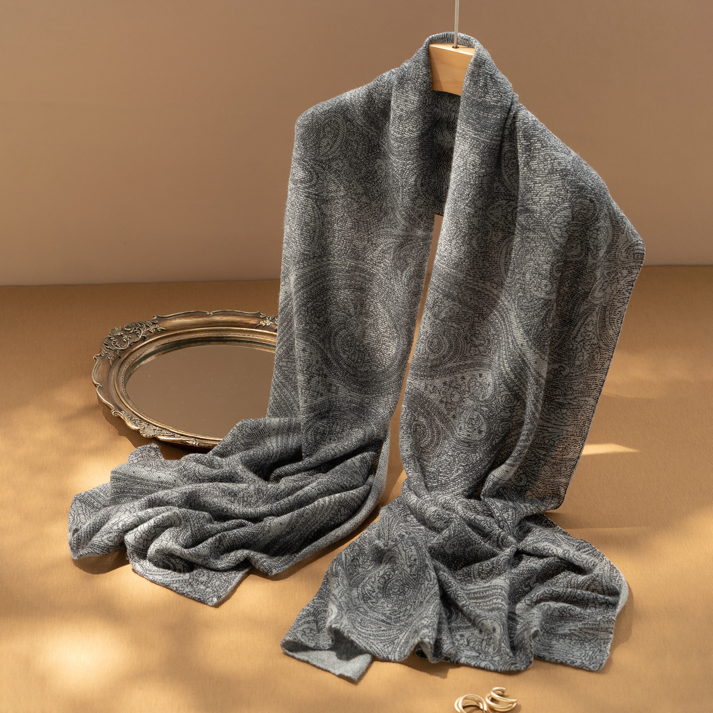 高级感中国风古典印花100%山羊绒围巾披肩女秋冬百搭保暖针织外搭