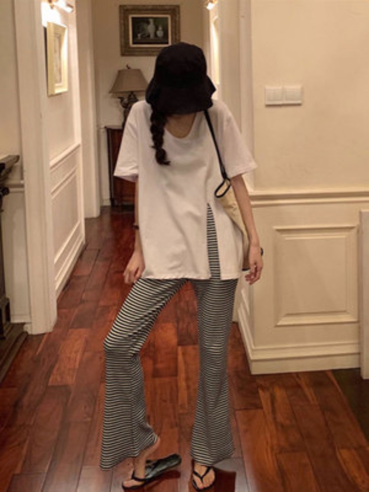 大码黑色莫代尔t恤女夏2023新款大领口宽松中长款开叉不规则上衣