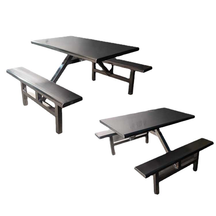 食堂餐桌椅组合学校学生员工工厂饭堂4人6人8人位 不锈钢连体桌子