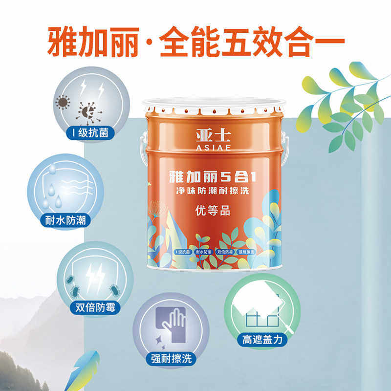 亚士漆内墙乳胶漆雅加丽净味防潮耐擦洗五合一家用室内自刷墙面漆